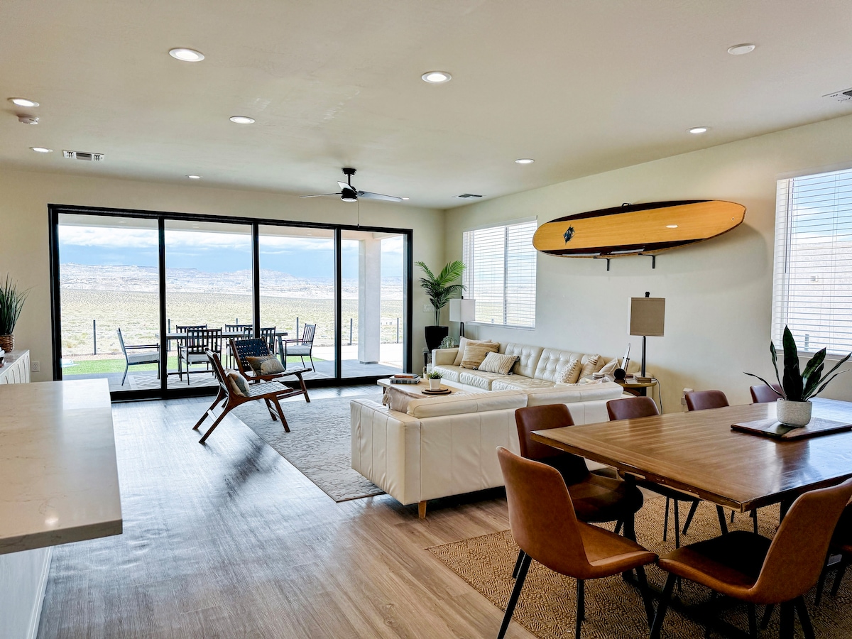 Sellest suurest, avatud ja kaasaegsest majutuskohast avanevad hingematvad vaated kogu päevaks. 20 jala kõrguste lagedega ja seinast seinani akendega saad nautida looduslikku ilu mugavalt kodus. 3 suurt magamistuba ja 2 vannituba, mis on jagatud kahele korrusele, kus on kaks lisarulli. Horseshoe Bend on 5 minuti kaugusel ning Antelope Canyon & Lake Powell on 10 minuti kaugusel. Grillimine, einestamine või stargaze tagahoovist ja ülemiselt terrassilt, istu kamina ümber, naudi shuffleboardi, jalgpalli, noolemängu või mänguautomaatide korvpalli, 5 telerit, kiire wifi, pesumaja