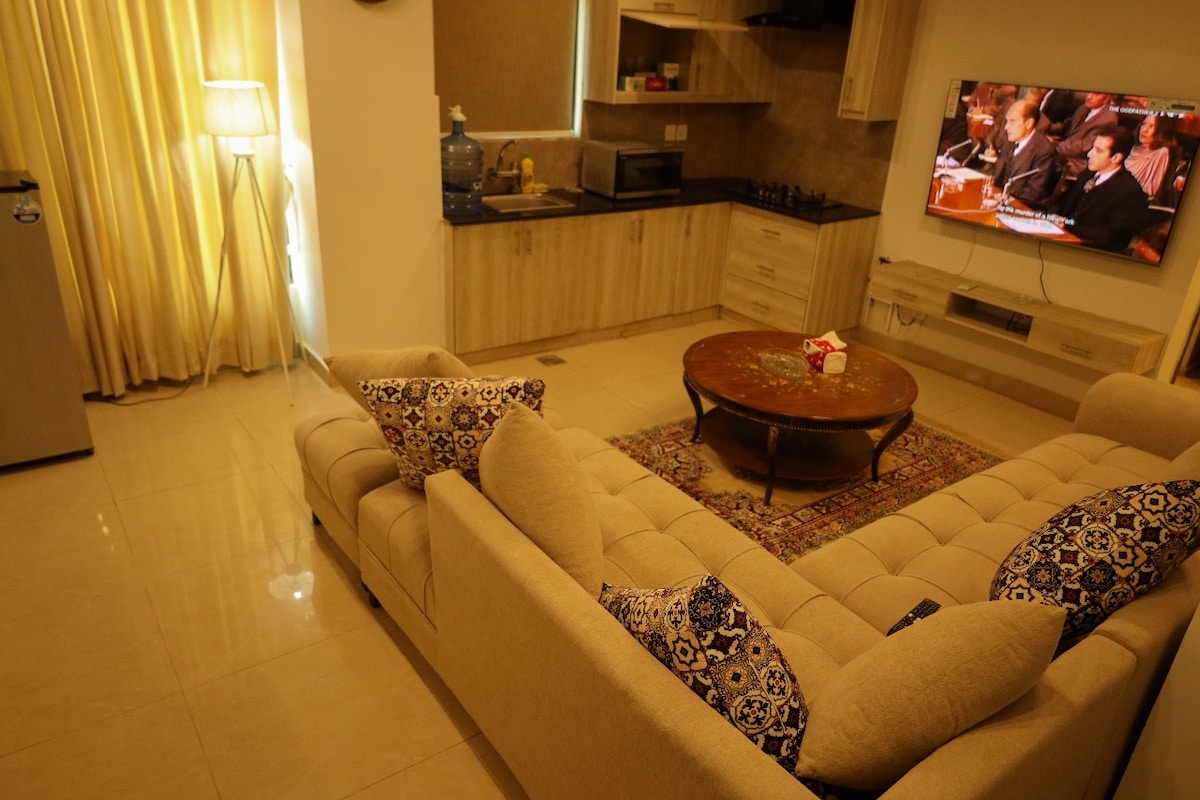 Moodne ühe voodiga korter Cube Apartmentsis, torn 2 - Bahria Enclave Islamabad. Naudi hubast peatumist nutiteleri (Netflix, Prime, YouTube), avatud köögi, privaatse rõdu ja kiire wifiga. Asub teisel korrusel lifti ja lihtsa iseseisva sisseregistreerimisega digitaalse koodi kaudu. Läheduses on toidupoed, pargid ja kohvikud. Turvaline, puhas ja rahulik majutuskoht, mis sobib ideaalselt paaridele või üksikreisijatele.
