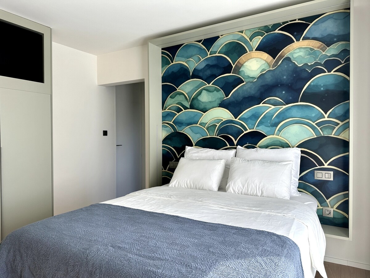 Paindlik eluase, ainulaadsed üritused, toit, joogid ja suurepärased teenused kunsti ja kultuuriga YUST a deluxe room is a private room for 2 people with a king-size bed. See sisaldab privaatset vannituba ja privaatset tualetti, kööki, lameekraaniga televiisorit, suurepärast aknavaadet koos istumisalaga ja ainulaadseid dekoratsioone toa kohta. 35 RUUTMEETRIT