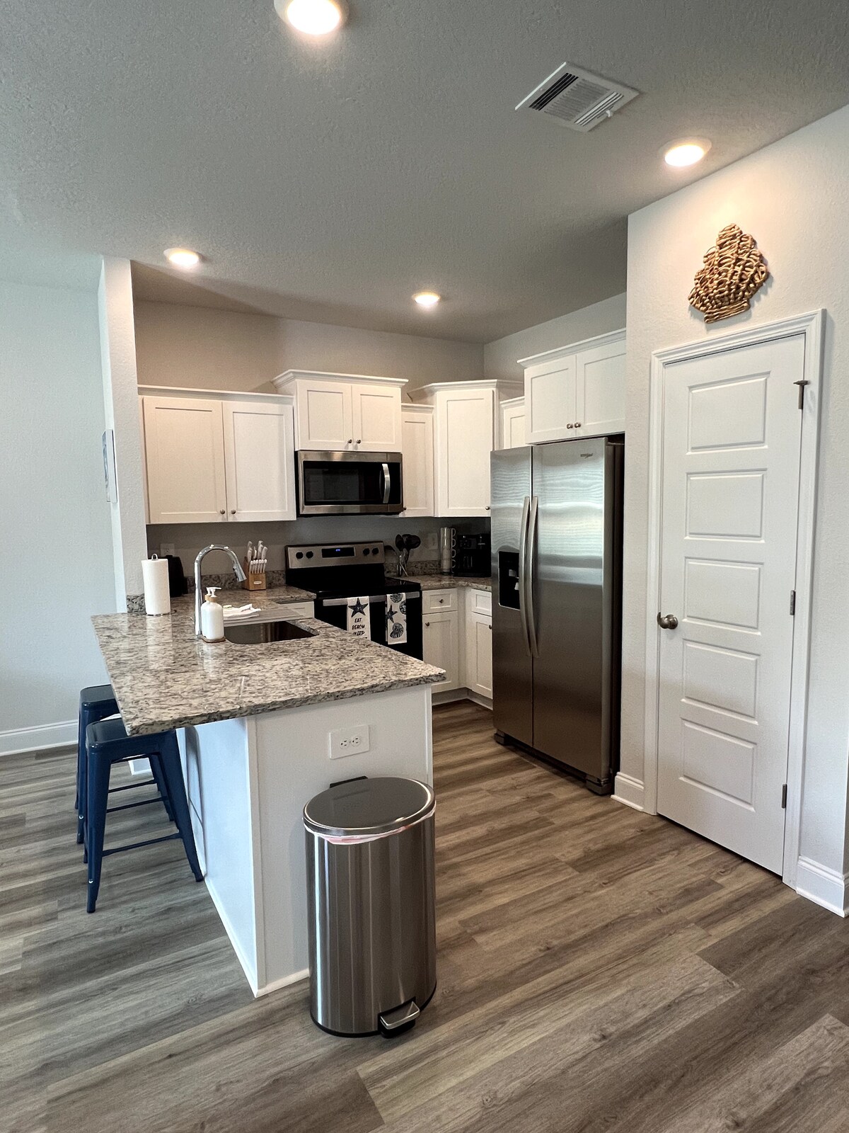 ✨ Eclectic Coastal Escape Near the Beach ✨ 🏖 Just minutes from the beach 🛏 Sleeps up to 4 (Queen bed + 2 twin beds) 🛌 Extra space for an air mattress if needed 🛁 2.5 bathrooms for added comfort 🍽 Fully stocked kitchen 🛋 Relaxing, thoughtfully designed living space 📺 Smart TVs & fast Wi-Fi 🚗 Easy parking + Tesla/Electric vehicle charger available 🌴 Screened-in backyard patio perfect for relaxing bug-free 🌊 Only 0.5 miles from the beach 🚭 No smoking 🎉 No parties 🐾 Pets considered