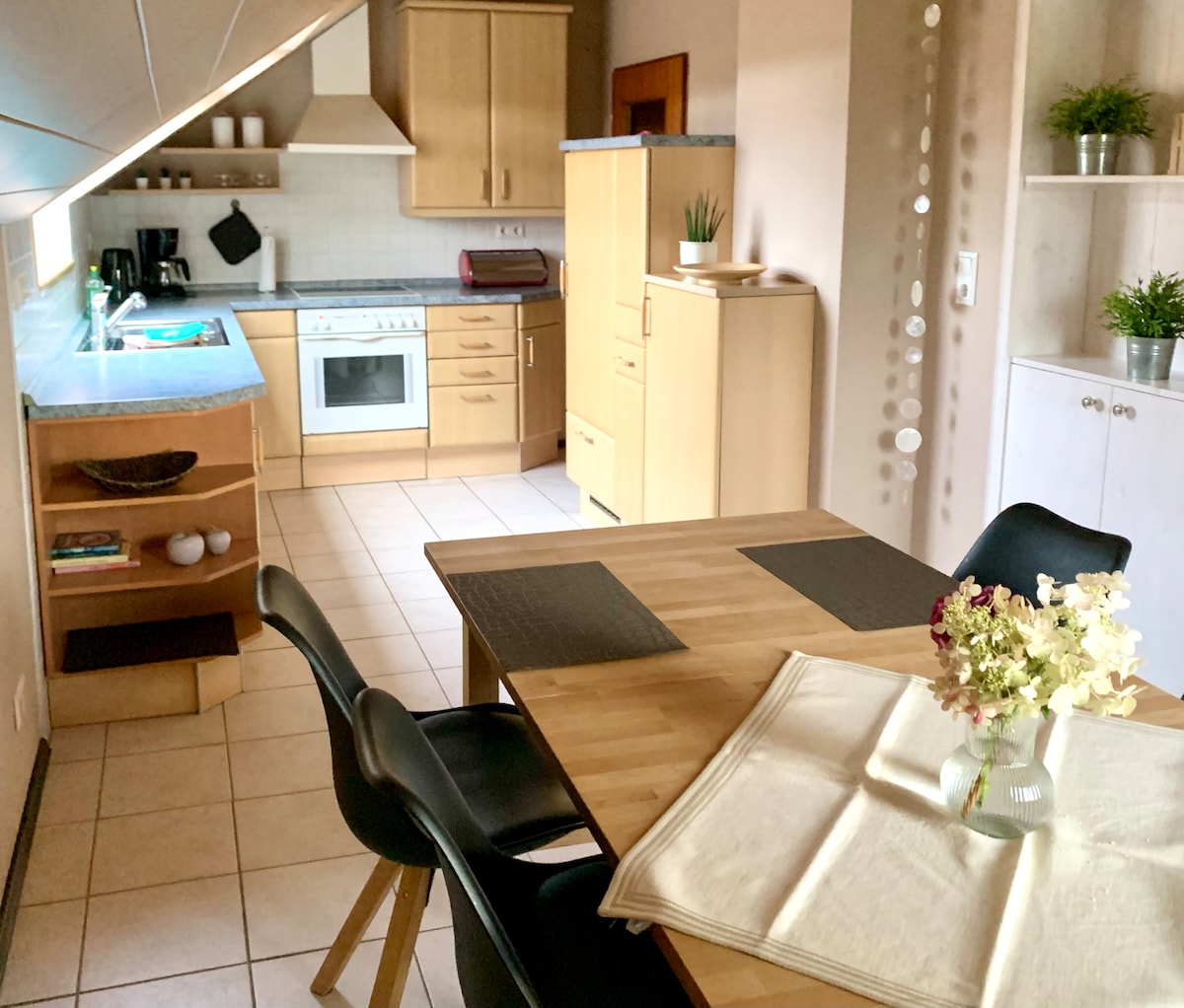 Dien lüttje Tohuus - sinu väike ajutine majutuskoht koos meiega Edemissenis. Tere tulemast meie puhkekorterisse meie puitmaja suure aiaga, kus on palju mängu- ja istumisvõimalusi. Loodan sind peagi näha! Sa elad meie kahetoalises korteris, sul on privaatne kaasaegne vannituba ja köök. Magamistoas on kaks üheinimesevoodit tammepuidust (kasutatav ka kaheinimesevoodina) ja elutoas diivanvoodi mugava madratsikattega (lamamisala umbes 120*190 cm).