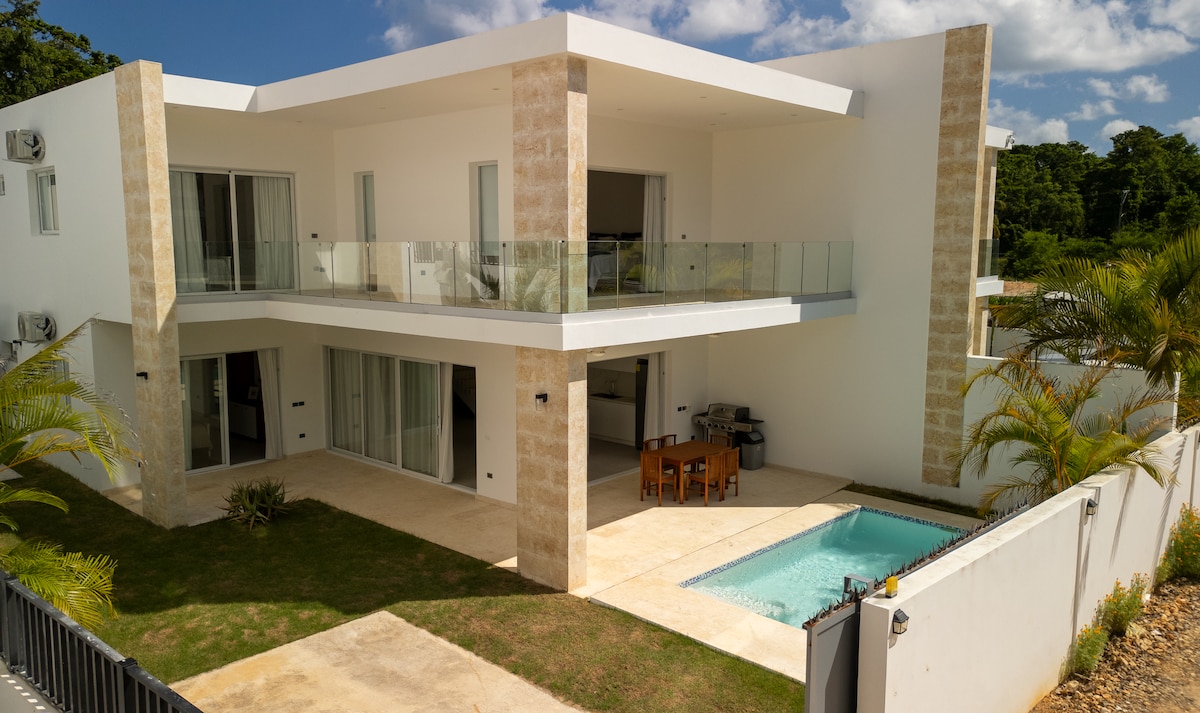 Kaasaegne villa 7-minutilise jalutuskäigu kaugusel Punta Popy rannast, privaatse basseini, avarate terrasside ja kõigi mugavustega mugavaks peatumiseks. See on stiilne puhkepaik keskkonnas troopiline Las Terrenas – lähedal restoranidele ja baaridele, öistele tegevustele ja loodusele. Villas on olemas kõik, mida vajad perega lõõgastumiseks, sõpradega reisiks või unustamatuks läbisõiduks. Privaatne parkimine, bassein ja grill, kliimaseade igas toas!