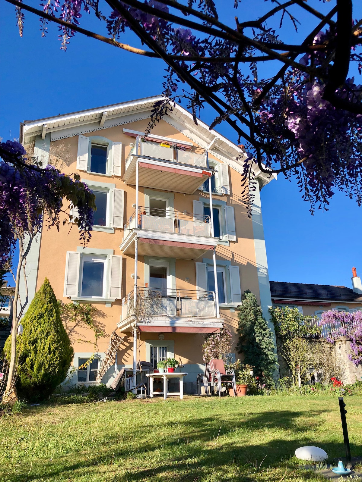 Tere tulemast meie koju! Pakume oma korterit äraolekul. Majutus on kaheinimesevoodi, 4 magamistuba, 3 kaheinimesevoodit ja beebivoodi. Üks tubadest on pühendatud meie kirgadele lauamängudele. Külalised saavad nautida kõiki asustatud maja mugavusi, justkui see oleks sinu kodu. Talvel soojendab puuküttega pliit sinu õhtuid. Suvel võimaldab aed nautida puude varju. Lausanne ja Genfi järv on 20-minutilise jalutuskäigu kaugusel. Naudi!