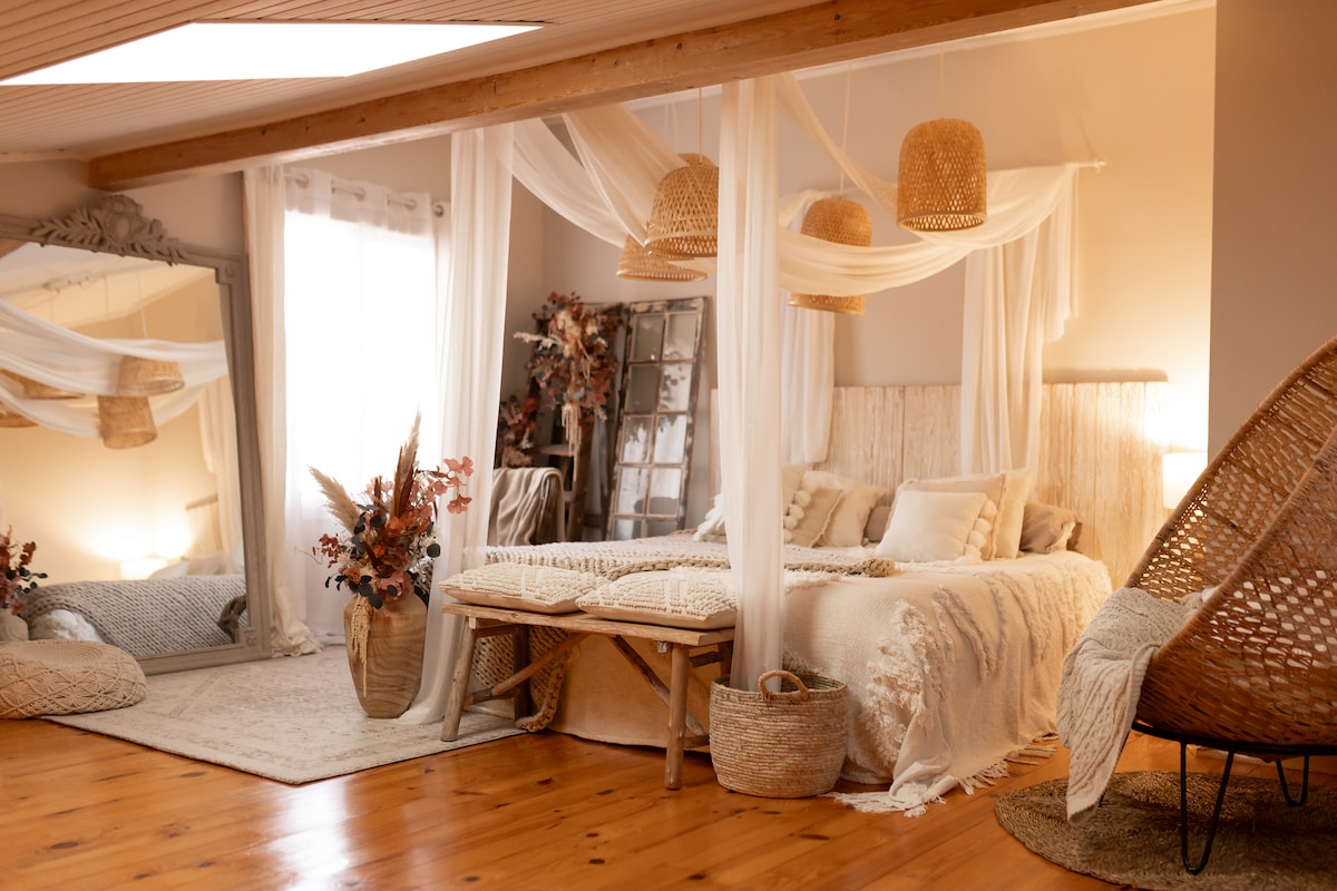 Ilus konditsioneeriga maamaja ökoloogilise Rootsi mullivanniga, ideaalne romantiliseks nädalavahetuseks nagu perepuhkuseks, 4 inimesele, mis tahes mugavus, suurte tammide keskel. Välimullivann on privaatne. SPAA jaoks on olemas majapidamisvoodipesu ja hommikumantlid Majutuskoht asub majaomanike lähedal. Pole tähelepanuta jäetud, see on täielik sõltumatus ning on ideaalne laadimiseks ja lõõgastumiseks.