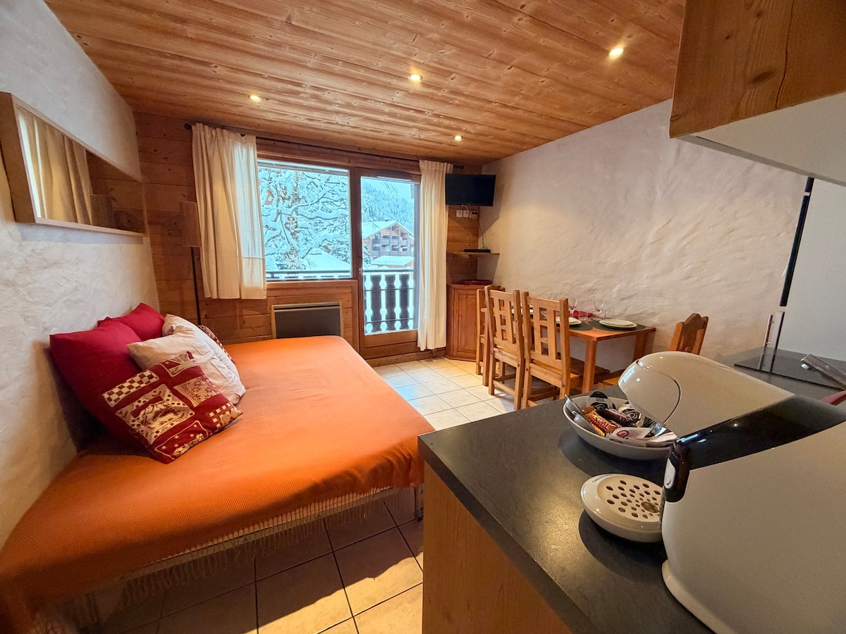 Stuudio renoveeritud 2021. aasta lõpus/2022. aasta alguses, hubane atmosfäär. Suurepäraste vaadetega Aravise mäeahelikule ja Crêt du Merle 'i suusanõlvadele. Külaala, vaikne ja poodide lähedal. Seda ilusat vaadet lõunapoolsest rõdult saab imetleda, see 20 m2 stuudio mahutab 3 inimest. Stuudio on väga hästi varustatud ja funktsionaalne.