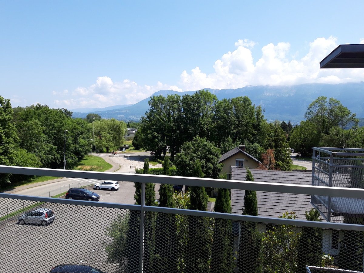 Ilus korter, vaikne, restoranide, poodide ja ühistranspordi lähedal. 5-10-minutilise jalutuskäigu kaugusel rannast, 2-minutilise autosõidu kaugusel. Sulle meeldib mu majutuskoht sooja õhkkonna, mugavuse, heleduse ja panoraamvaate tõttu mägedele. Chambéry on 10 km kaugusel, Aix-les-Bains on 10 km kaugusel ja Revardi suusakeskus on 30 minuti kaugusel. Tegevused : suusatamine, matkamine, jalgrattarajad Aix-les-Bainsisse ja Chambéry 'sse; Ferrata kaudu; kanjonisõit; veetegevused