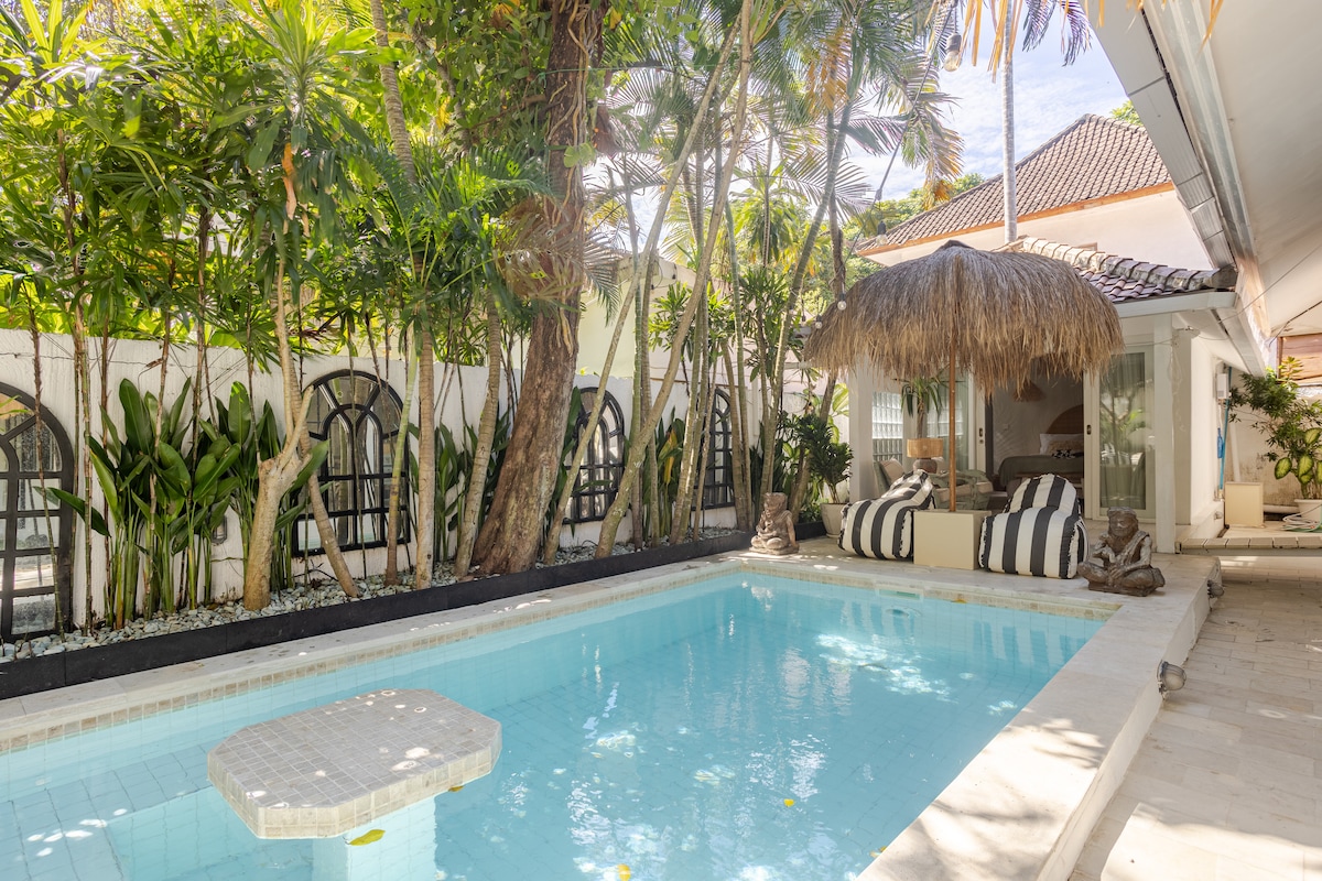 Villa Intan is a private 2-bedroom villa located 350 m from Seminyak Beach. The villa offers the privacy and facilities of a vacation home without compromising on amenities and services, such as daily housekeeping and breakfast. A private pool, an open-concept living area, a fully equipped kitchen, comfortable king-size beds, en suite bathrooms, and a jacuzzi make the villa ideal for families, couples, or friends. Our team is available for you all day and we have a security guard at night.