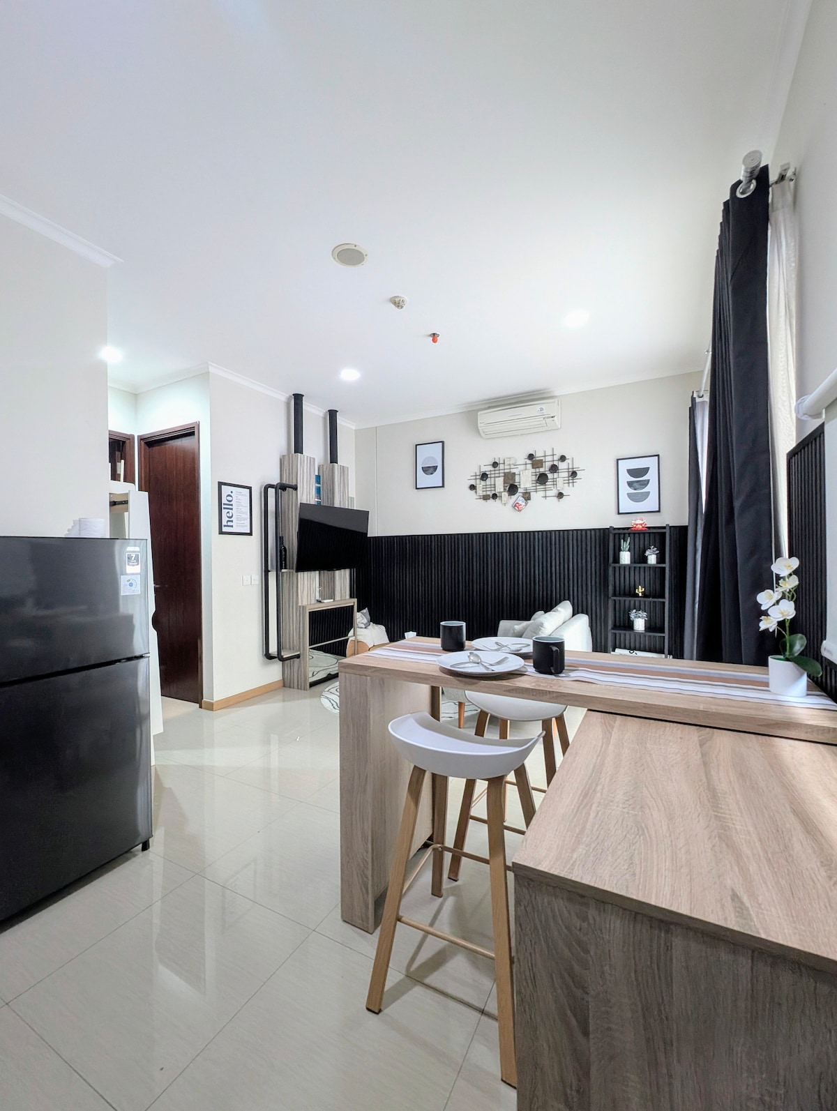 Hubane, täielikult sisustatud stuudiokorter Casa De Parco korteris, mis asub strateegiliselt BSD Central Business Districtis, üle digitaalse keskuse, Unileveri ja jalutuskäigu kaugusel AEONI ostukeskusest ja The Breeze 'ist. Samuti lühikese vahemaa kaugusel ICE-BSD (konverentsikeskus) ja Universitas Prasetya Mulyast. Suurepärased korterirajatised, sealhulgas bassein, aed, jooksurada, jõusaal, saun, ühine fuajee, parkimine, miniturg, pesumaja ja kohvikud. Pärast saabumist ei ole võimalik peatumise kestust lühendada.