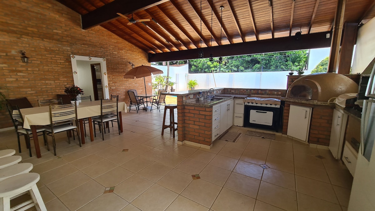 Venha para nossa casa de campo em Leme, São Paulo! Com espaço para até 12 pessoas, nossa propriedade é perfeita para famílias grandes ou grupos de amigos. - Suíte principal com ar condicionado e TV - Áreas comuns amplas e confortáveis - Churrasqueira com fogão a lenha - Mesa grande para refeições - Balanço de criança - Máquina de lavar - Cozinha completa - Localização tranquila, com fácil acesso à cidade e apenas 500 metros da rod. anhanguera Relaxe e aproveite ao máximo sua estadia conosco!
