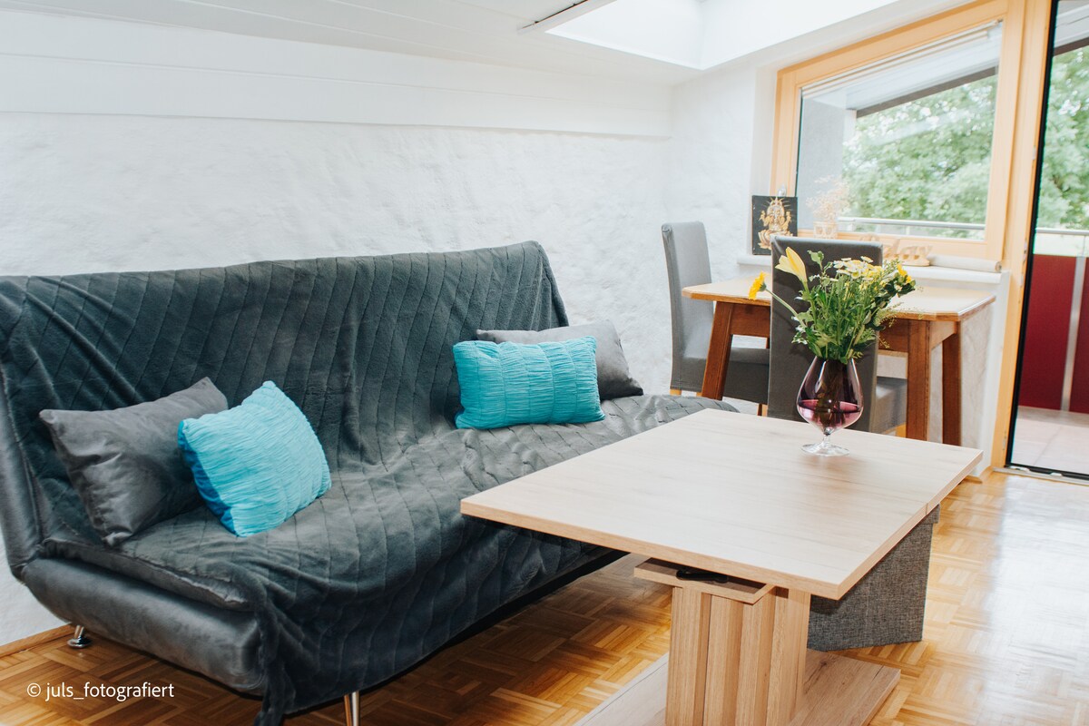 Gemütliche, urige Eigentumswohnung lädt zum verweilen ein. Die Terasse als Platz zum ausklingen des Abends und das Bett in der Galerie lassen den nächsten Tag in ruhiger Umgebung planen.