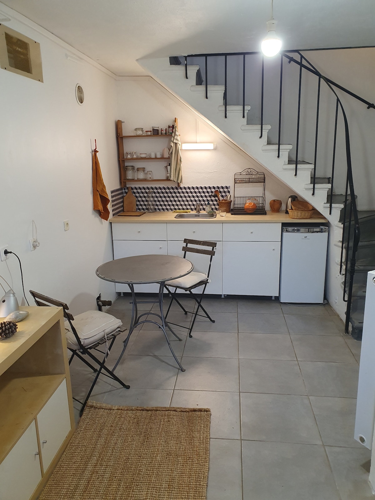 Stuudio koosneb miniköögist, Dolce Gusto kohvimasinast, iseseisvast vannitoast ja tualettruumist. Meie maja asub Crestis (2,5 km kesklinnast) väga vaikses ja rohelises piirkonnas. 20 min jalutuskäik - 5 min jalgratta või autoga kesklinnast…. Sest see langeb...!!! Haagissuvilaga parkimine ei ole probleem. Saadaval on meie bassein (hooajal) ja solaariumid.