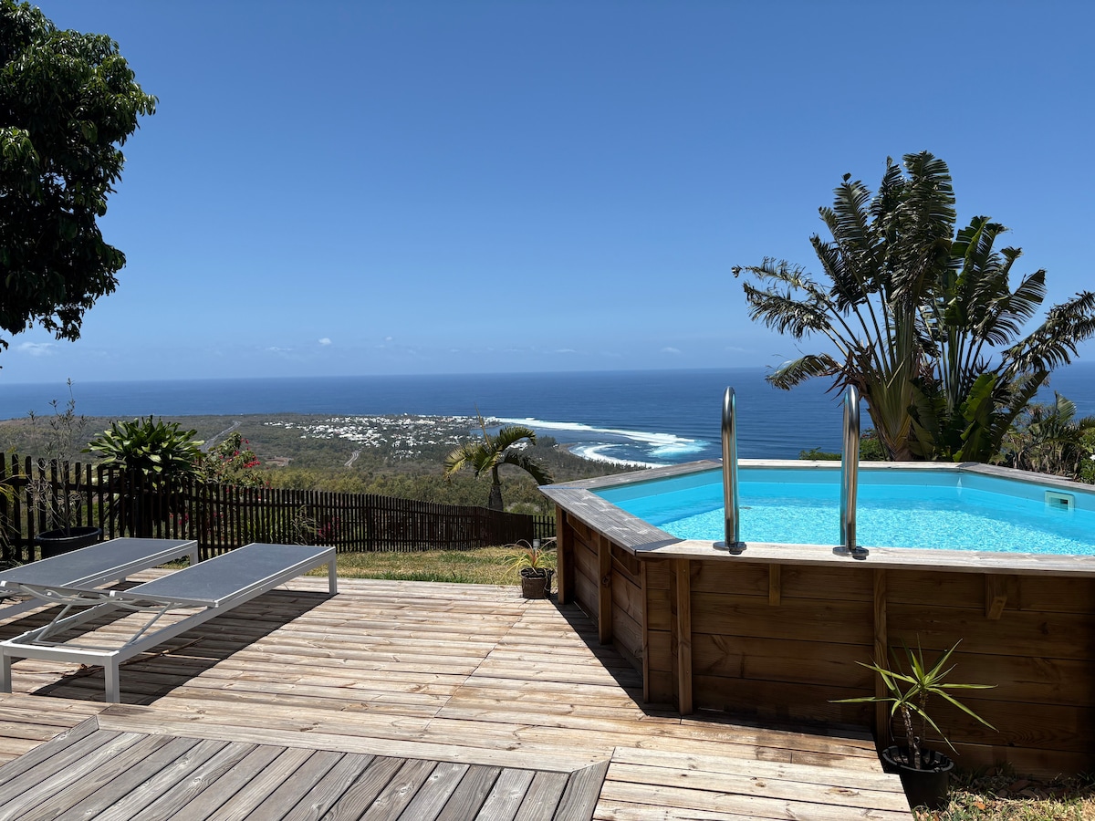 Bungalow situé dans un jardin privé, avec vue sur mer. Quartier calme à 300 d'altitude ; à 15' de la plage de sable noir et 10' de la forêt de l'Etang salé. Centres villes de L'Etang-Salé et des Avirons à 10', avec toutes les commodités. Petite superette pour les 1eres nécessitées à 2' à pieds. L'accès au bungalow se fait par un grand escalier. Que se soit pour du repos, un stage ou une mission professionnelle, vous trouverez ici le calme recherché au milieu de la verdure.