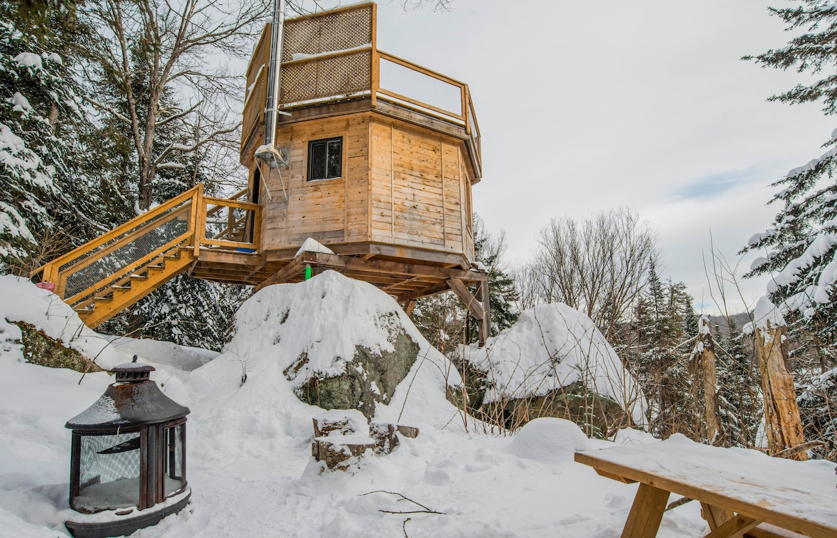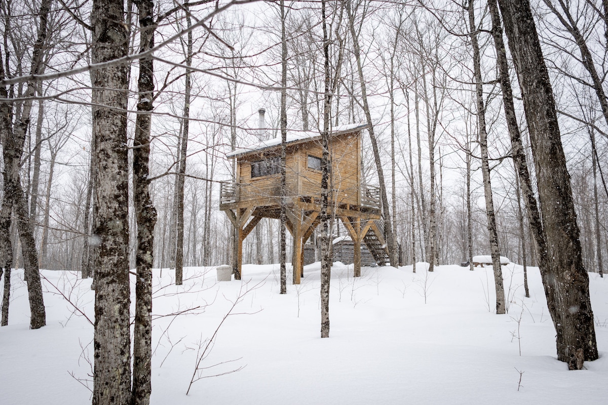 Ebatavaliseks majutuseks, miks mitte väikemaja puu otsas, mis asub vaiksel ja kaitstud kinnistul Laurentiani piirkonnas Quebecis.