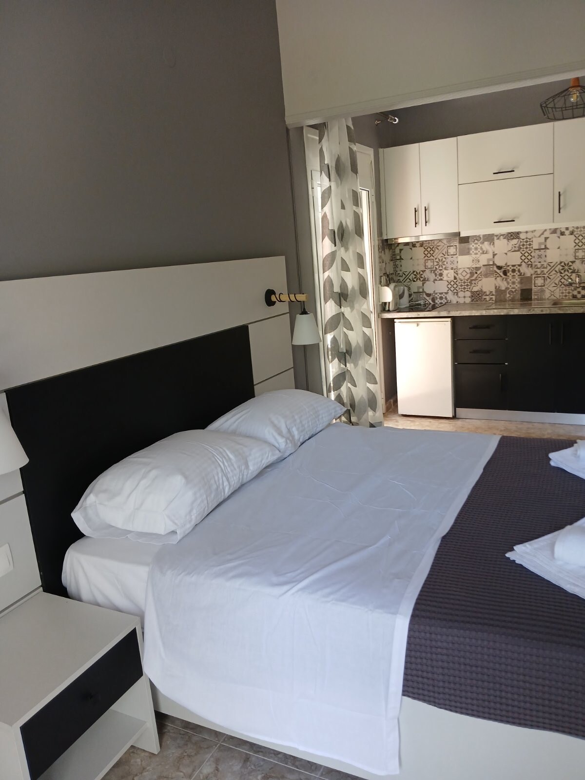 Eυρύχωρα και διαμπερές δωμάτιο των 25 τ.μ. διαθέτει πλήρως εξοπλισμένη κουζίνα, με τα απαραίτητα οικιακά είδη.Όπως επίσης, αυτόνομο κλιματισμό, ανεμιστήρα οροφής και τηλεόραση 21’’ ιντσών. Δωρεάν δίκτυο WiFi. Ενώ επίσης, διατίθεται parking και laundry service. Μπορούμε ακόμη να προτείνουμε ολοκληρωμένες ημερήσιες εκδρομές σε όλες τις μοναδικές τοποθεσίες του νησιού που αξίζει να ανακαλύψετε, με την διαμεσολάβηση ενοικίασης αυτοκινήτου ή μοτοποδηλάτου σε προσιτές τιμές.