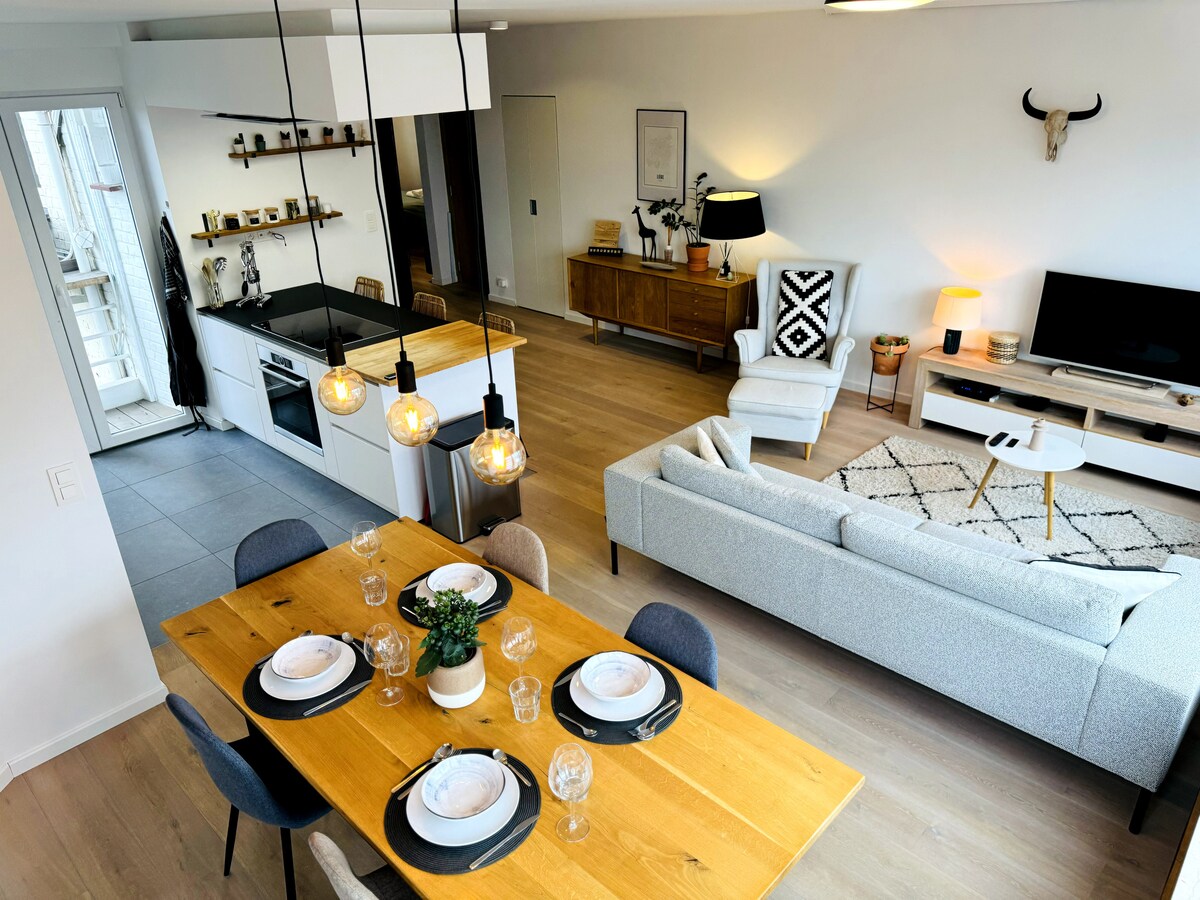 Tere tulemast oma linna oaasi juurde! Kaktus, kaktused ja ka ilus otsene vaade Meuse 'ile. Sõna otseses mõttes linna südames asuv kahe magamistoaga korter sobib ideaalselt linna maadeavastajatele: - Kaasaegne arhitekti lofti vaim: kõik on avatud! - 2 kaheinimesevoodit „nagu kodu“ (kõik on hoolikalt valitud) - Rõdu külma õlle/kohaliku veiniklaasi nautimiseks - Tõeline duširuum, mis kopeerib vihma