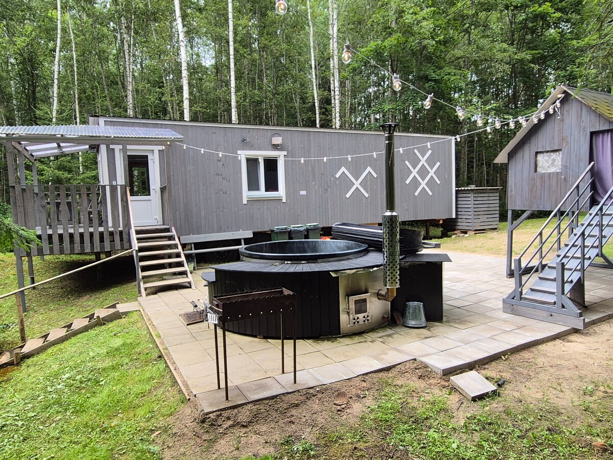 Lõõgastu meie privaatses metsamajas, kus on tasuta kümblustünn tähtede all — saun on saadaval soovi korral lisatasu eest. Privaatne metsamaja Līgatne lähedal, ideaalne paaridele ja loodusesõpradele. Täielik vaikus, naabreid pole – ainult mets ja elusloodus. Naudi tasuta kümblustünni tähtede all, hubaseid õhtuid kamina ääres, filmiõhtuid siseruumides projektoriga ja õhtusööke väljas, kasutades grilli või pitsaahju. Ideaalne romantilisteks väljasõitudeks, digitaalseks detoksiks ja rahulikuks looduses puhkuseks.