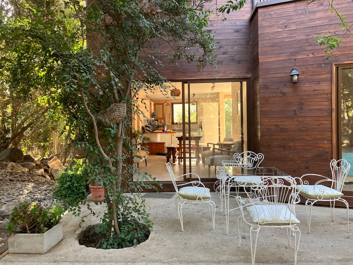 Casa entre árboles y piscina