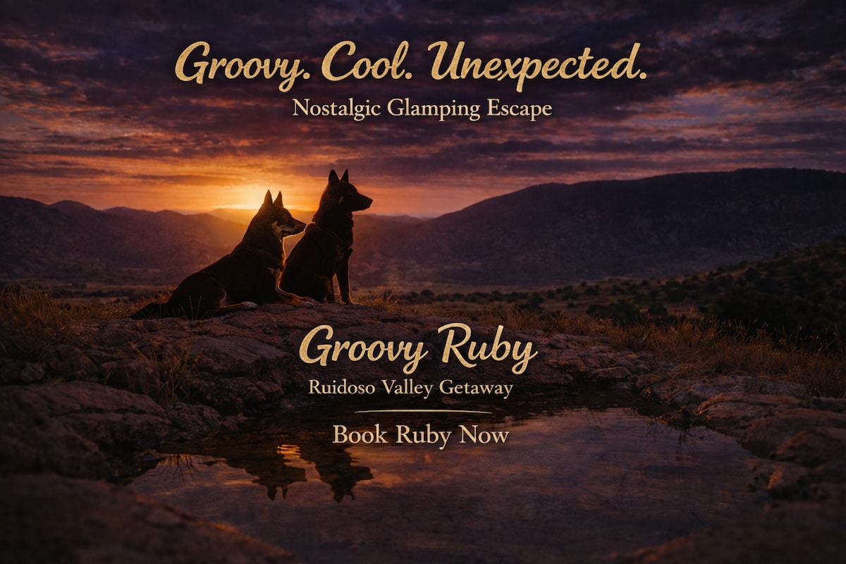 Retrolik luksuslik telkimine Glencoe vaikses maapiirkonnas, mis asub Ruidoso Downsist vaid 14,5 km kaugusel idas maanteel US-70. Peatu Groovy Rubys, värvilises 1962. aasta vanas haagissuvilas, kus on lõkkekoht, avar tähistaevas ja rahulik rantšokeskkond sõbralike koerte ja kanadega, mis asub 15-hektarisel eramaal Lincoln National Foresti kõrval. Mõnus ja lõõgastav koht, kus lõõgastuda ja loodust nautida. Enne broneerimist loe palun allolevast jaotisest „Majutuskoht“ kogu teavet majutuskoha kohta ja majutuskoha reegleid.
