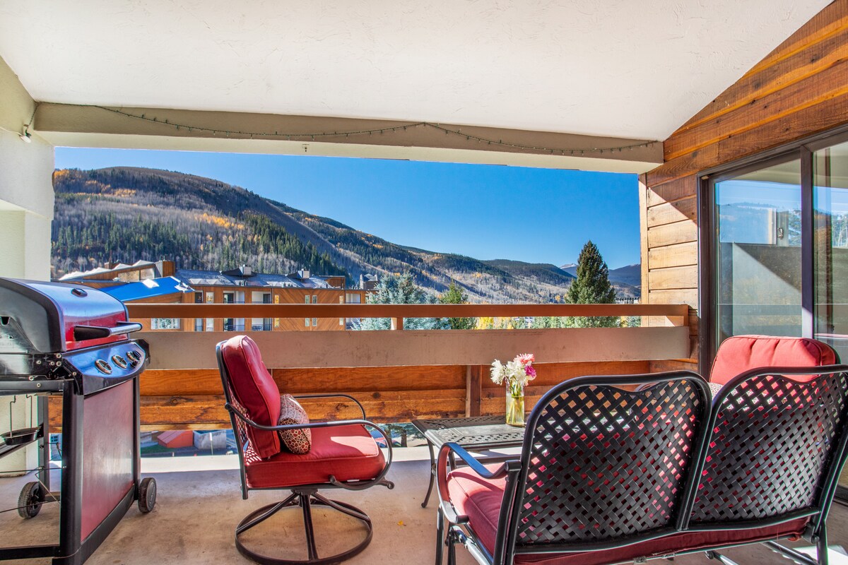 Incredible unobstructed views of Vail Mountain in this spacious, two bedroom condo with modern mountain style. Vaulted ceilings with picture windows let the famous Colorado sun pour in. A cozy fireplace and renovated kitchen make this a wonderful home base to explore the outdoor playground! Steps to the free Town of Vail bus for easy access to Vail Village - shopping, dining, and nightlife without ever needing your car! TOV STR License #025804