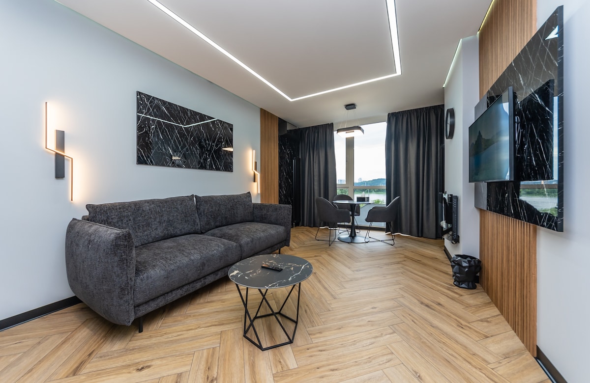 Kaasaegne kahe magamistoaga korter, mis asub pealinna südames, Vabaduse väljakust vaid 15 meetri kaugusel. Kogu korter on külaliste käsutuses, elutuba, kaks magamistuba, köök ja vannituba. Korteris on kõik, mida vajad toiduvalmistamiseks, TV, pesumasin, WiFi, kaks rõdu, millest üks on vaatega Maidanile.