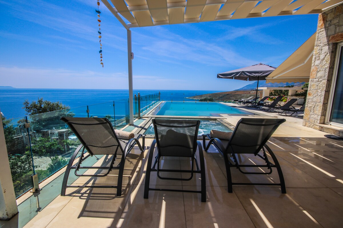 Joonia mõisa asub Himare 'is, Albaanias, Albaanias, on luksuslik villa, mis on ehitatud 2018. aastal Albaania Rivierale. Neli avarat magamistuba, viis elegantset vannituba ja täielikult varustatud köök pakuvad mugavust ja lõõgastust. Naudi väligrillimisala, suurt basseini ja avarat terrassi, kust avanevad vapustavad vaated Joonia merele. Koge rahulikku õhkkonda ja kaasaegseid mugavusi ühes Albaania kõige maalilisemas kohas.