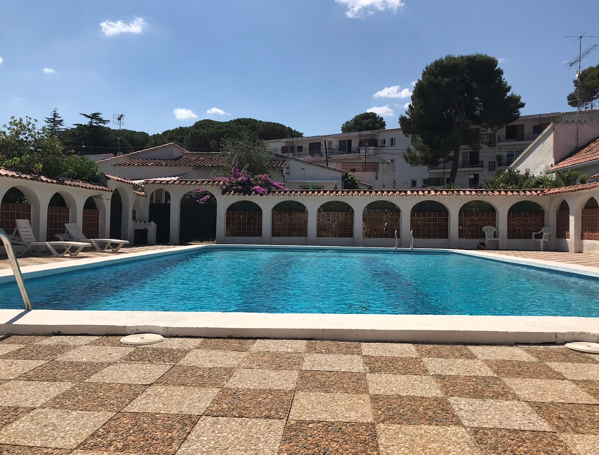 ( COVID 19 SPECIAL DESINFECTING ) Excellent traditional house with three floors and pink façade. The Pink House is built into a group of houses at the limit of a little village, Marinyà, one of the little populated areas of "La Tallada de l'Empordà". In front of the house there is a 80 sqm solarium/garden with swimming pool, kitchen, toilet and barbecue area.