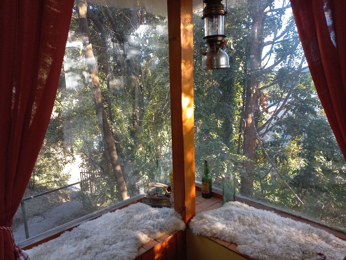 Es una acogedora cabaña de madera, en un lugar natural, tranquilo y seguro, rodeado de arbustos y árboles que darán un ambiente de paz. En la parte posterior de la cabaña hay un patio o sector con vista hacia un campo de animales, además podrás compartir y hacer alguna parrilla si gustas. Podrás entrar y salir a la hora que estimes conveniente. La locomoción pública, podrás tomar cualquier colectivo hacia y desde la cabaña, ya que nos encontramos en un Av. Principal.