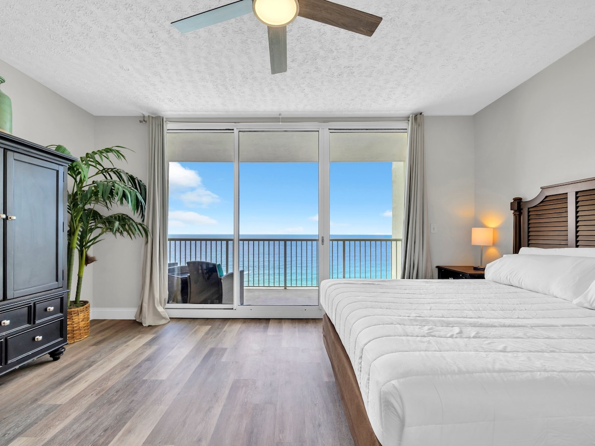 This GULF FRONT BEACH condo has a style all its own. Long Beach is a gated community and features the longest stretch of sand in PCB. This newly renovated condominium on the 7th floor has panoramic views of the Gulf from every room . Spanish-style ceramic tile floors & premium granite countertops throughout. The huge curved balcony attracts spectacular sunsets. The resort has low occupancy so the super-fast elevators won't leave you waiting. The resort has a 25 yo age minimum in order to book.