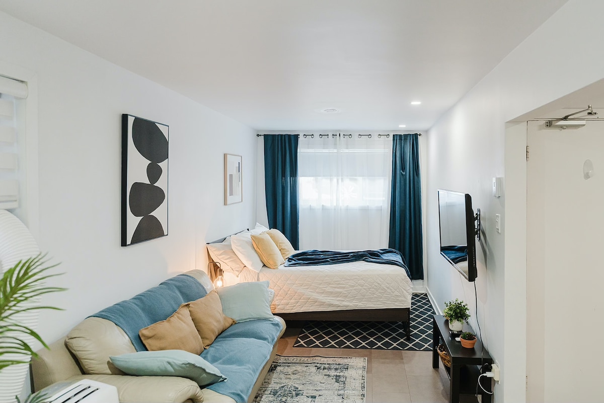 Põgene Montreali stiilsesse sviiti! Siin ei jagata piltidel midagi teistega 🔐 + sinu eraldi sissepääs🚪 Lõõgastu avaras elutoas nutikal suurel ekraanil 📺 Magada mugavas queen-voodis 🛏️ Kõik asub keldrisviidis vaiksel tänaval 💤 Autoga 🚙 15 minutit Montréali kesklinnani 6 min REM Panama jaama ja Mall Champlainini 5 minutit DIX30 ostukeskuseni Jalgsi🚶🏻🚶🏻♀️ 12-minutiline toidupood Sisaldab tasuta parkimist tänaval 🅿️ Pesumasin/-kuivati 🧺 Mitmesugused 🍽️ söögikohad on mõne minuti kaugusel. Broneeri oma puhkusereis juba täna : )