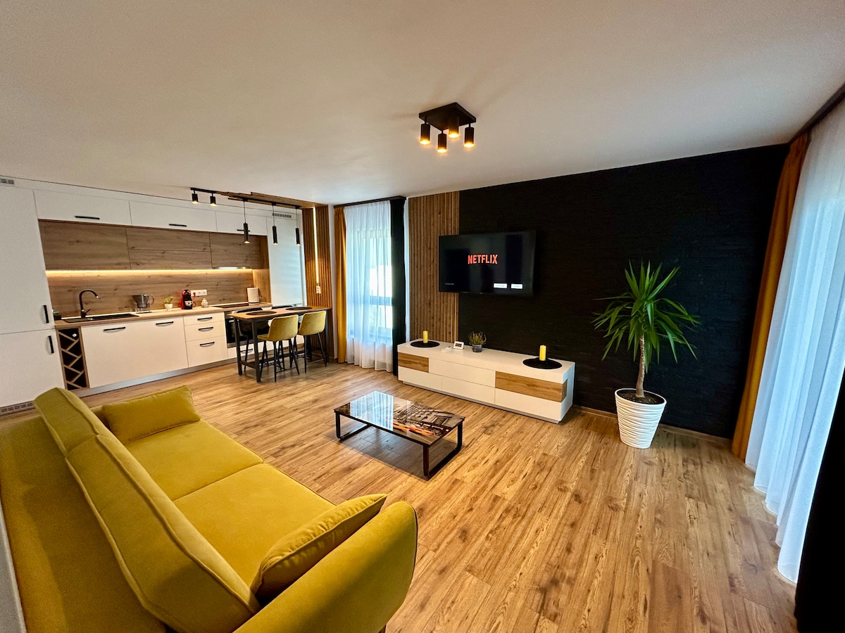 Welcome to our brand new one-bedroom apartment in Cluj Napoca, just 2 km from the city center! Perfect for solo travelers, couples, or small groups, this stylish space features a comfy double bed, an expandable couch, a fully equipped kitchen, Smart TV with cable& Netflix, and a beautifully furnished bathroom. Come enjoy a cup of coffee on the house while you take in the peaceful surroundings from the terrace. Private parking and self-check-in are included. We look forward to hosting you!