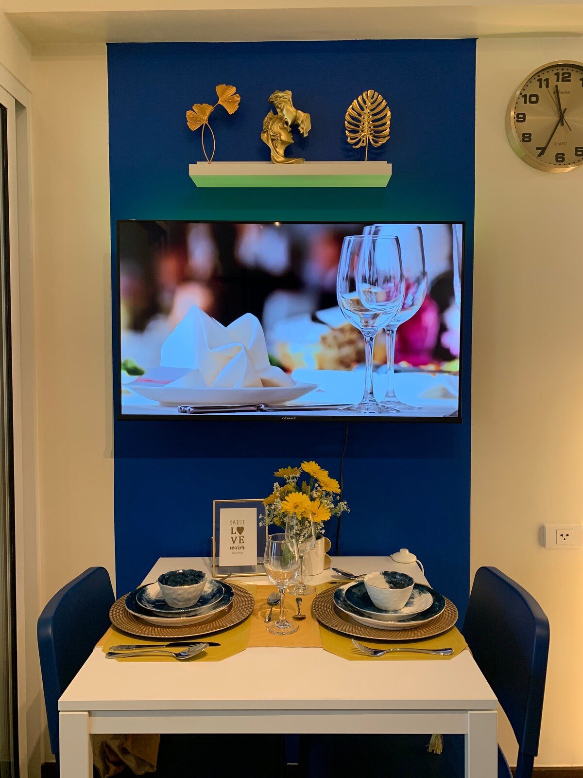 95smq. Kaks suurt rõdu vaatega Laguna järvele , Fort Bonifacio ja Makatiview. Kõigis tubades on nutikas teler ja üks sala. Kaks tualettruumi (üks ühiskasutatavas ruumis ja teine peamises magamistoas). Bluetooth-kõlariga sala juures. 8-kohaline söögilaud. Täielikud köögiriistad. Seadmes on oma pesumasin. triikrauaga. fööniga. külmkapiga. mikrolaineahjuga. blenderiga. ahjuga. riisikeetjaga.