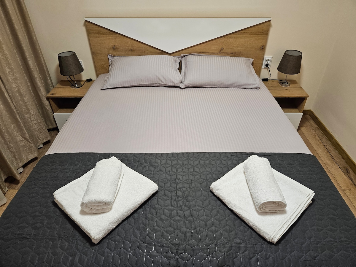 Tere tulemast meie uhiuusse ilusasse, päikesepaistelisse ja kaasaegsesse kahe magamistoaga korterisse V. Tarnovo südames, mis tundub nagu sinu kodu väljaspool kodu. See pakub kaunist vaadet ja asub linna südames. Oleme veendunud, et korteris on kõik, mida vajad oma peatumiseks, pakkudes samal ajal suurepäraseid vaateid mägisele vanalinnale. Kõik linna restoranid, baarid ja kohad on väga lähedal. Piirkond on ilus, vaikne ja turvaline ning seal on tasuta parkimiskohad üle hoone.