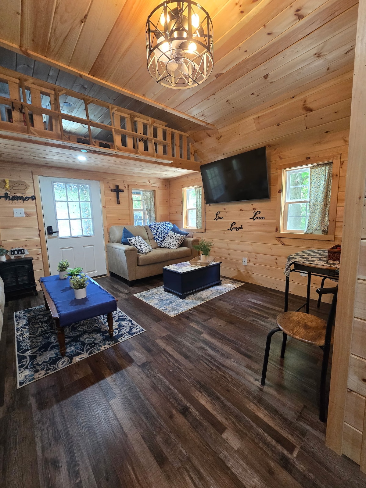Vaid 3 miili kaugusel I-24-st ja jalutuskäigu kaugusel Patti 'st. Naudi oma peatumist Grand Riversis, kust kõik vajalik on jalutuskäigu kaugusel. Mugavus on siin võtmetähtsusega, maitsev Cabin Pizza asub samas kompleksis! See armas, äsja renoveeritud väike majakese korter on ideaalne koht, kus paar (või paar sõpra!), jahimehed ja kalamehed saavad puhata. Jalakäigu kaugusel Patti's, Badgett Playhouse, Iron Bell Coffee, Between the Lakes Taphouse! Tulease ja istumisala lõõgastumiseks!
