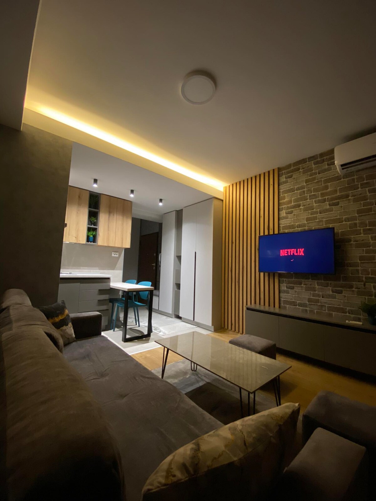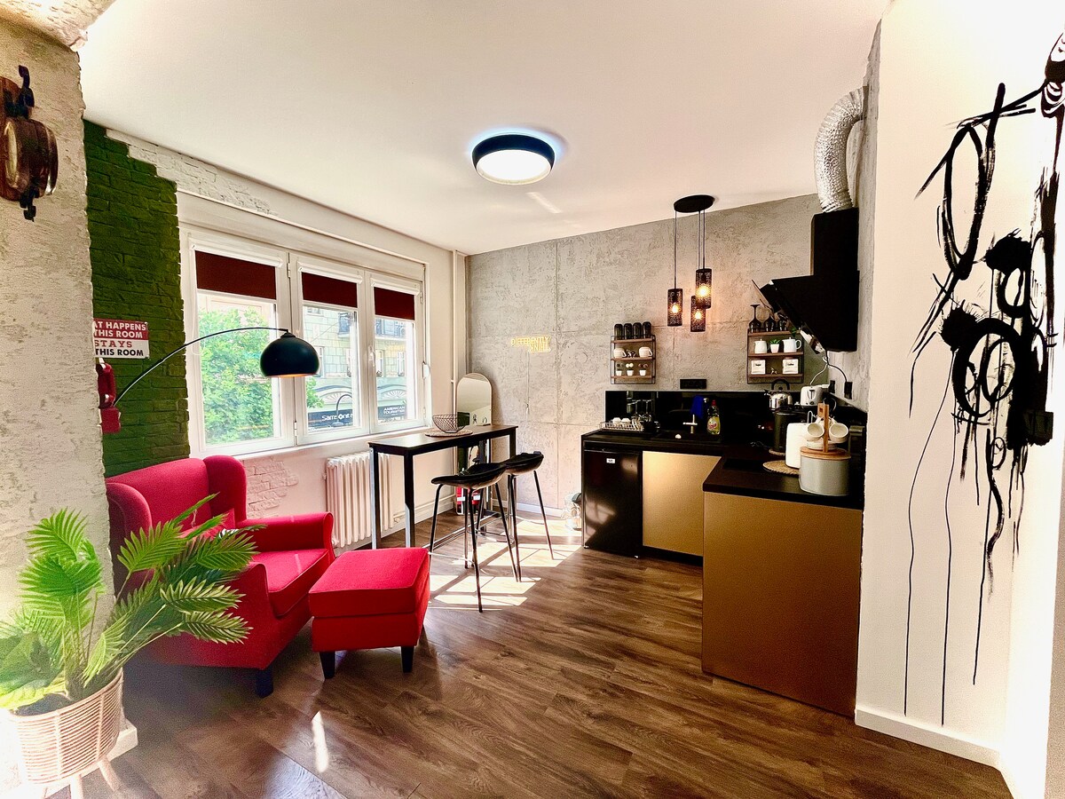 See ülemise korruse korter sobib ideaalselt neile, kes soovivad olla keset linna, kuid soovivad siiski vaikset ruumi lõõgastumiseks ja nautimiseks. Korteris on kodukino Netflixi ja kaasaegse helisüsteemiga. Alternatiivina saad nautida vaateid Skopje silmapiirile ja Vodno mäele otse puhkeruumist. Korter sobib tööks või reisimiseks ning seal on kiire internet ning suur kontorilaud mugavate nahktoolidega ning veel kaks väiksemat spetsiaalset töökohta.
