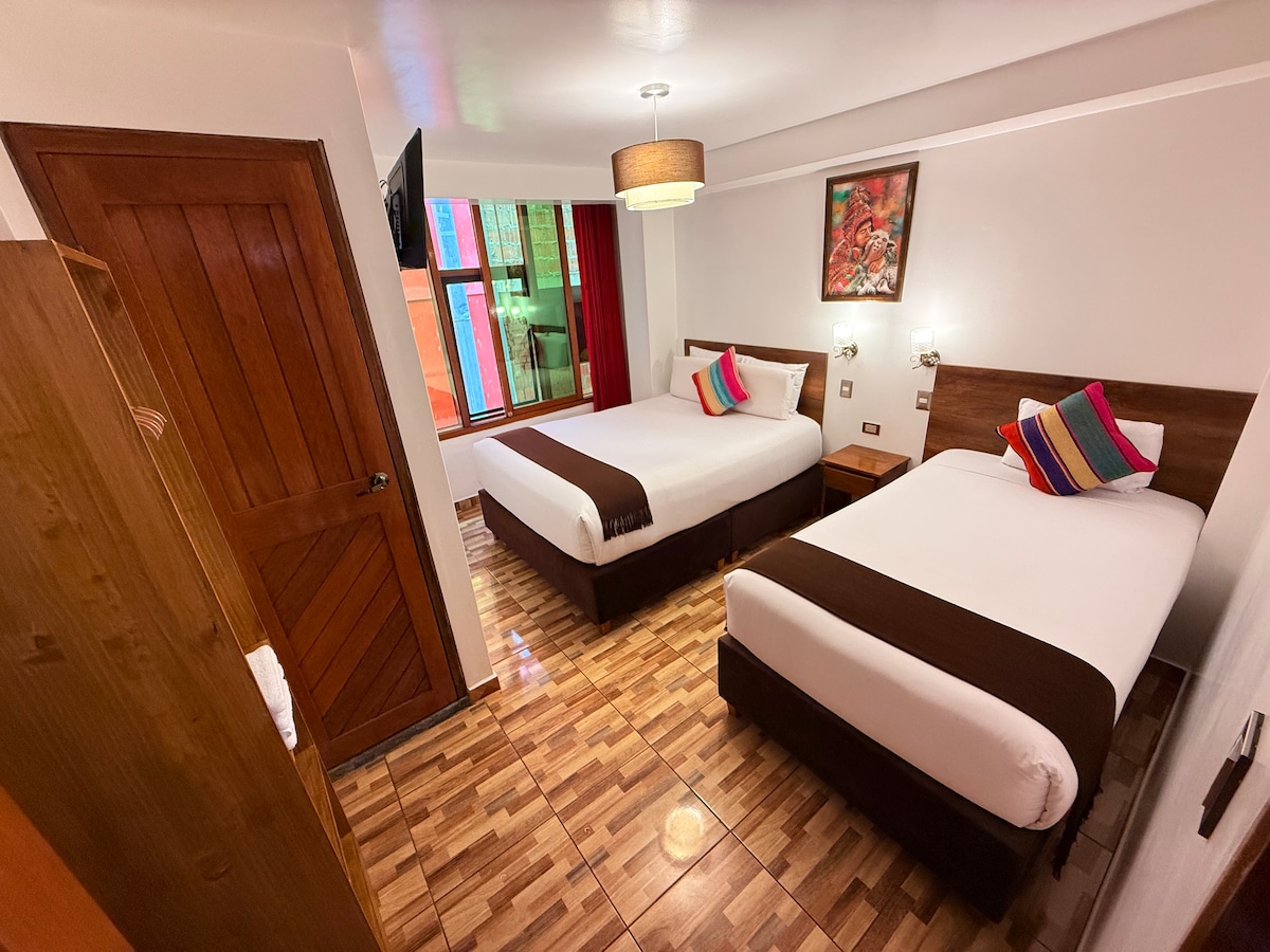 Quiet and well-located hotel in Ollantaytambo, just a few minutes from the Main Square and very close to the train station, with vehicle access right to the door. The interior, peaceful room with a double bed (1.35 m), private bathroom, and 24/7 hot water. Wi-Fi, cable TV, heater, and kettle, towels, shampoo, and soap. We offer a beautiful terrace with great views, shared kitchen/dining area for guest use. Breakfast included (box breakfast available for early departures). Ideal for 1–2 guests.