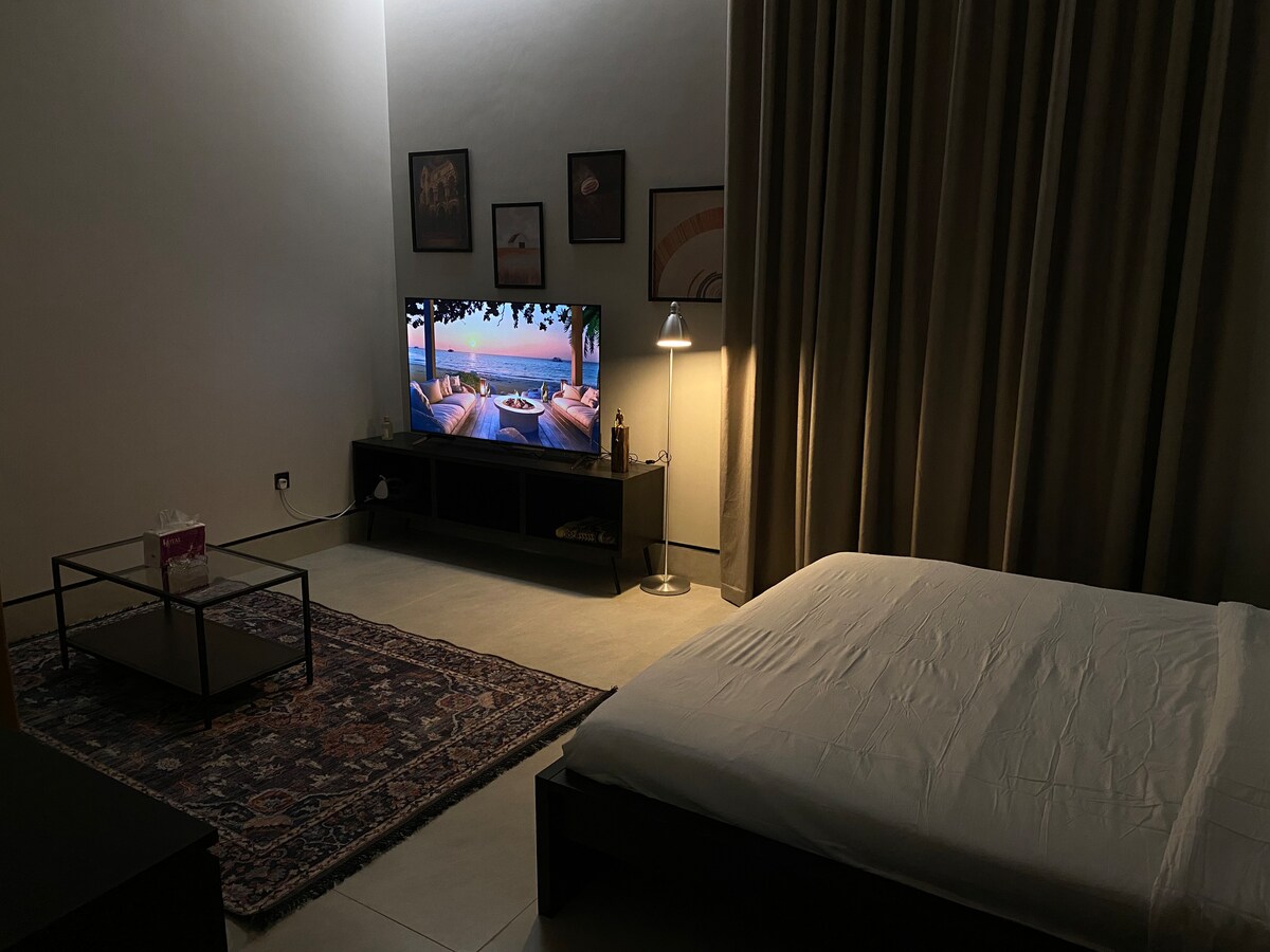 Esiletõstetud täielikult varustatud stuudio Asukoht : vöö tsoon Kõigi teenuste ja ürituste lähedal - Haramaini rong: 7 minutit - Haram al-Nabawi: 8 minutit - Lennujaam : 15 min - Quba mošee: 10 minutit Koosneb järgmistest osadest : Magamistuba + vannituba Teenused - Nutikas sisselogimine - Külmik - 60-tolline teler Netflix + Watch + Youtube - Siseparkla Majutuskoht : Selles kaasaegses stuudios on kvaliteetsed disainielemendid, külalised saavad lõõgastuda luksusliku palgaga ja nautida 60-tollist telerit, kus on täielikult varustatud vannituba.