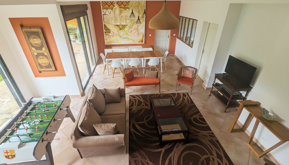 Luksuslik villa privaatse basseiniga, mis sobib ideaalselt lõõgastavaks peatumiseks. Sul on meeldiv peatumine koos pere või sõpradega turvalises, rahulikus ja vaikses elurajoonis. See pakub sulle kõiki mugavusi, palju poode (juuksur, massaažisalong, pagariäri jne) ja läheduses asuvaid restorane (itaalia, Aasia, baarisalong jne) (5-10-minutilise jalutuskäigu kaugusel). Villa asub 15 minuti kaugusel suurest Akorondrano kaubanduskeskusest ja 35 minuti kaugusel Ivato rahvusvahelisest lennujaamast autoga