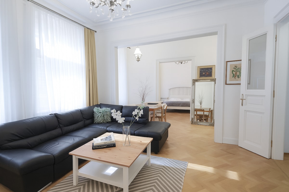 Vaid mõne sammu kaugusel kuulsast Karli sillast asuv valgusküllane ja avar korter on stiilne puhkekoht endise barokkstiilis palee teisel korrusel (ilma liftita). Elegantne sisustus, esmaklassilise Itaalia madratsiga eriti lai kaheinimesevoodi, kliimaseade ja spaa-stiilis vannituba vihmaduši ja soojendusega põrandatega loovad sarmi mugavust. Ideaalne paaridele või üksikreisijatele ning sisaldab ka privaatset täielikult varustatud pesu. Vaiksel vanalinna tänaval asud Praha ikooniliste vaatamisväärsuste lähedal.