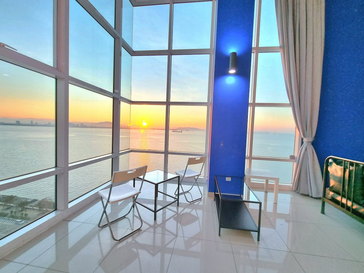Maritime Suites by Comfy Penang • Blokeerimata otsene vaade ookeanile • Päikesetõusu vaade majast • Vaade Penangi sillale majast • 5-tärni SUPERMAJUTAJA TEENUSED • mere ääres • 1200 ruutjalga dupleks • 2 privaatset parklat • 100 Mbit/s WiFi • 30 restorani, kohvikut, pubi, Starbucks, kohvioad, metroo, 7-Eleven on meie maja 2. tasemel • 5-8-minutilise autosõidu kaugusel Chew Jetty, Komtar ja UNESCO Heritage vanalinnast.