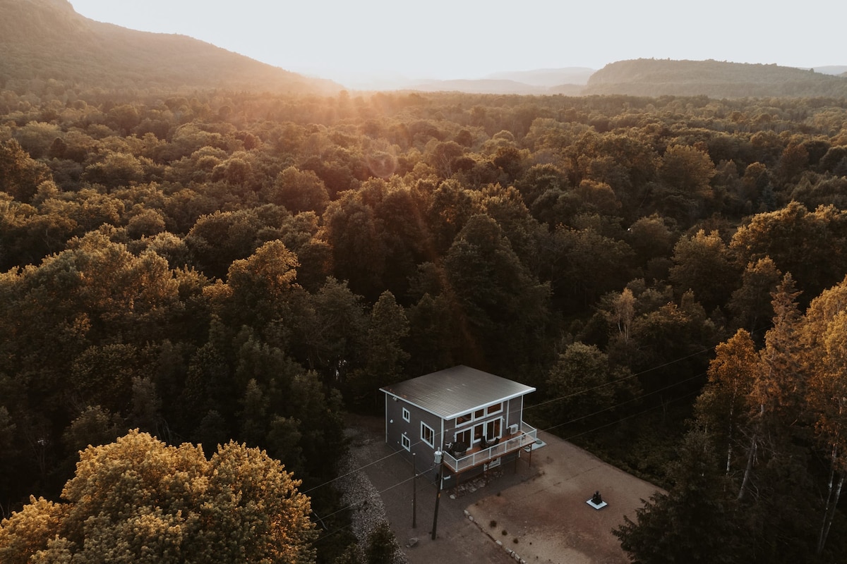 Meie Põhjamaade metsa mägisuvila sobib ideaalselt kvaliteetse aja veetmiseks paarina (või lapsega) või puhkuseks (kiire wifiga). Puidust interjöör on soe ja hubane. Täiskõrgusega akendest avanevad imelised vaated metsaorule. Avatud köök ja elutuba hoiavad sind toiduvalmistamise ajal vestluses. Kui eelistad väljas süüa teha, on seal grilli ja söögilauaga lõkkekoht. Ainult 70-minutilise autosõidu kaugusel Montrealist. Järv on 25-minutilise jalutuskäigu kaugusel, kui pargid lähedal.