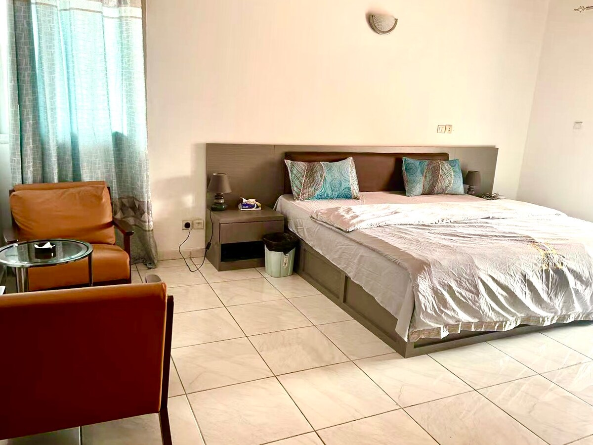 Abidjan Marcory/Bietry, rue des Majorettes, möbleeritud 2-toaline korter, mis on saadaval 1. korruse esimesel korrusel koos privaatse mullivanni spaa- ja massaažialaga, on äsja renoveeritud korter, kus on privaatne aed, elektrigrill Korter asub väga kenas vaikses ja turvalises kohas, kuhu on lihtne juurde pääseda ja mis asub kõigi mugavuste kõrval, nagu restoran, sularahaautomaat, apteek, supermarket jne... ja 5 minuti kaugusel lennujaamast. Märkus: tasuta massaaž alates 5 ööst