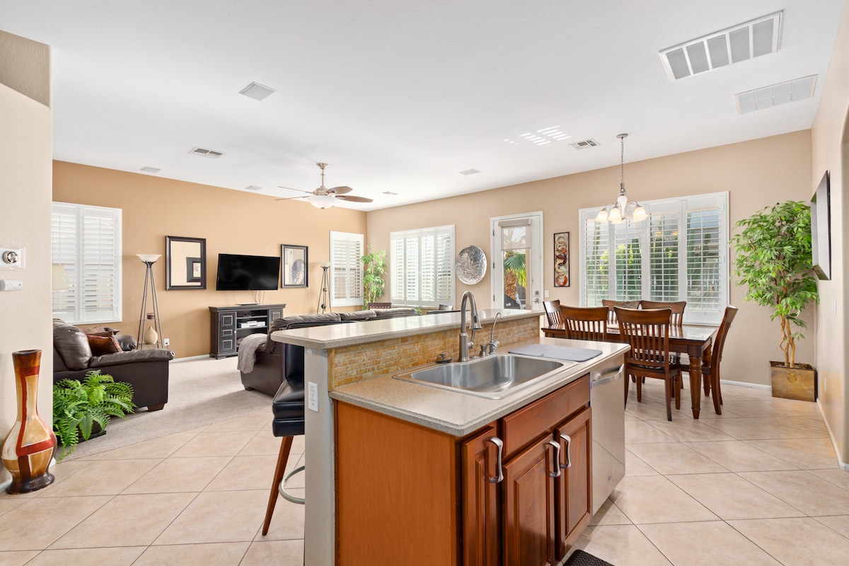 Privaatne majutuskoht varustatud köögiga, leotamisvann, luksuslik peasviit, meediatuba, ping-pong, noolemäng, kontori nurk, W/D ja A/C. Õues: kõrbeoaas koos privaatse basseiniga, mullivann, lõkkekoht, udune terrass, grill ja baariga istumine. Basseiniküte on saadaval hinnaga 50 $ päevas (min 3 päeva); 12–24 tundi kuni 82°. Küsimuste korral saada majutajale Juleele sõnum või korralda basseiniküte.
