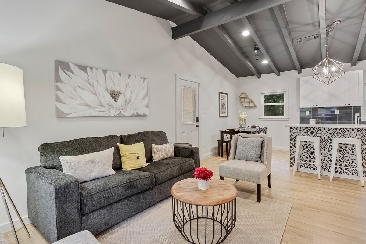 9 minutit Truist Parki! See privaatne päikesepaisteline külalistemaja asub mõne minuti kaugusel Truist Parkist ja jalutuskäigu kaugusel Smyrna kesklinna kauplustest ja restoranidest. Naudi päevasel ajal päikesepaistet põrandast kuni klaasukseni ja naudi rahulikku ööd jaheda geeli mäluvahust madratsil öösiti. Alates sügavast leotamisvannist kuni täieliku köögini ei jäta see privaatne stuudio sulle midagi muud kui pikendada oma peatumist. Oleme lemmikloomasõbralikud ja meil on fikseeritud lemmikloomatasu 75 dollarit.