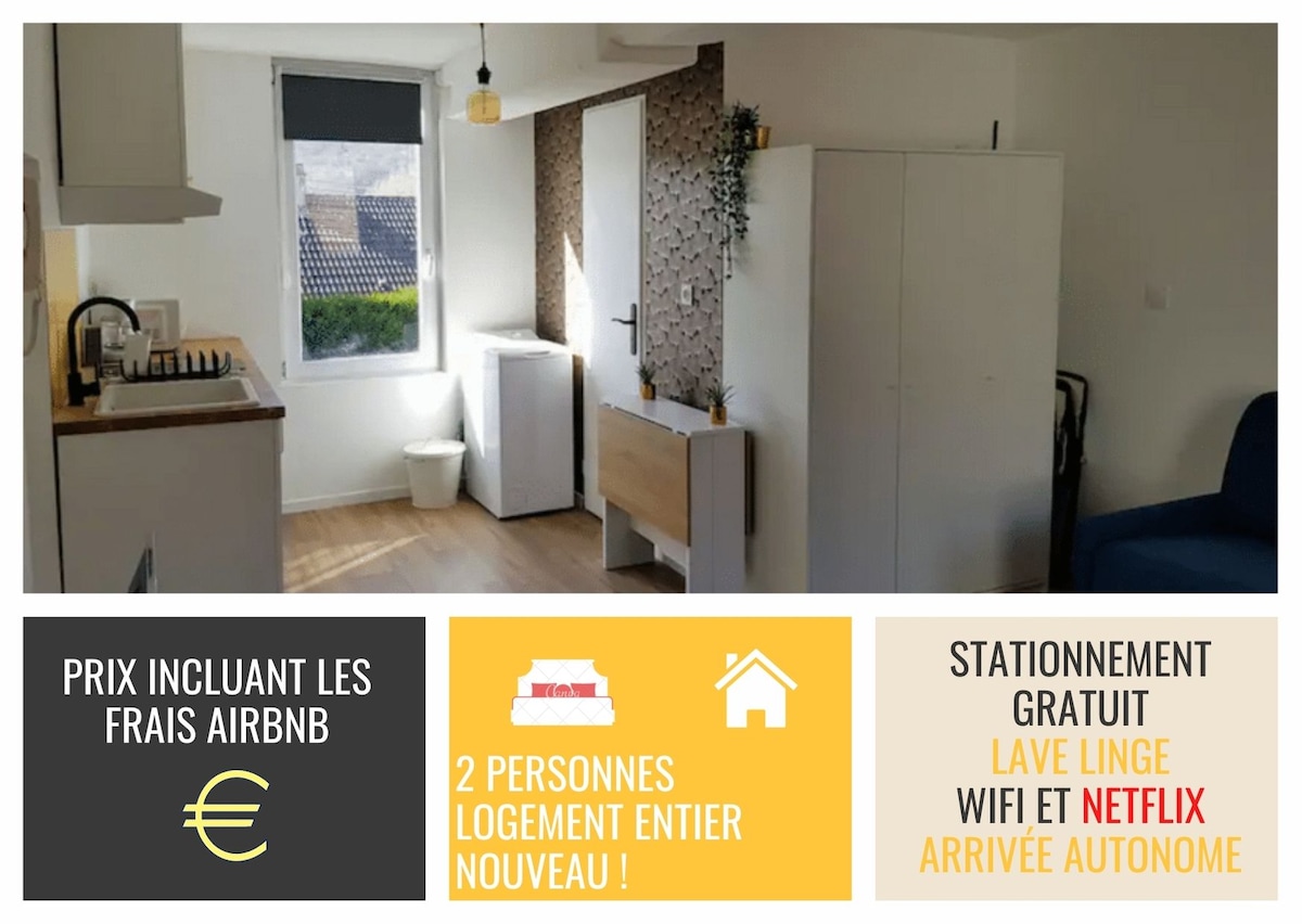 Meeldiv 20 m2 suurune korter mezzanine magamistoaga, asub vaikses piirkonnas 10 minuti kaugusel Roueni kesklinnast, turvalises elukohas, kus on privaatne parkimine. Korter on varustatud funktsionaalse kööginurgaga, vannitoaga tualetiga. Lairiba internetiühendus, televiisor, väikesed seadmed. Teori PEATUS (otsebuss Roueni kesklinna), mis asub korterist 3 minuti jalutuskäigu kaugusel. Poed ja mugavused korteri lähedal.