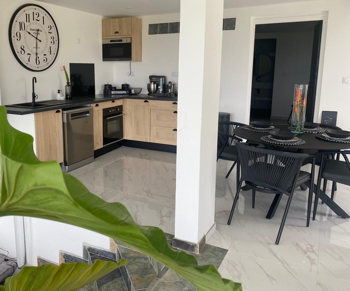 Martinique 'is Marinique' i kõrgustes asuv koht pakub uhket mere ja mägede vahel raamitud maastikku. Siinne kõikjal asuv loodus püüab pakkuda sulle heaolu ja lõõgastumisel põhinevat peatumist. Maja on loodud ja sisustatud nii, et sinna mahub kaks hingekaaslast, kes vajavad rahu ja ühenduse katkestust. Ruumid on mugavad ja hoolikalt sisustatud, pöörates tähelepanu detailidele, luues stiilse ja rafineeritud atmosfääri. Ideaalne paarile üksi või koos lapsega.