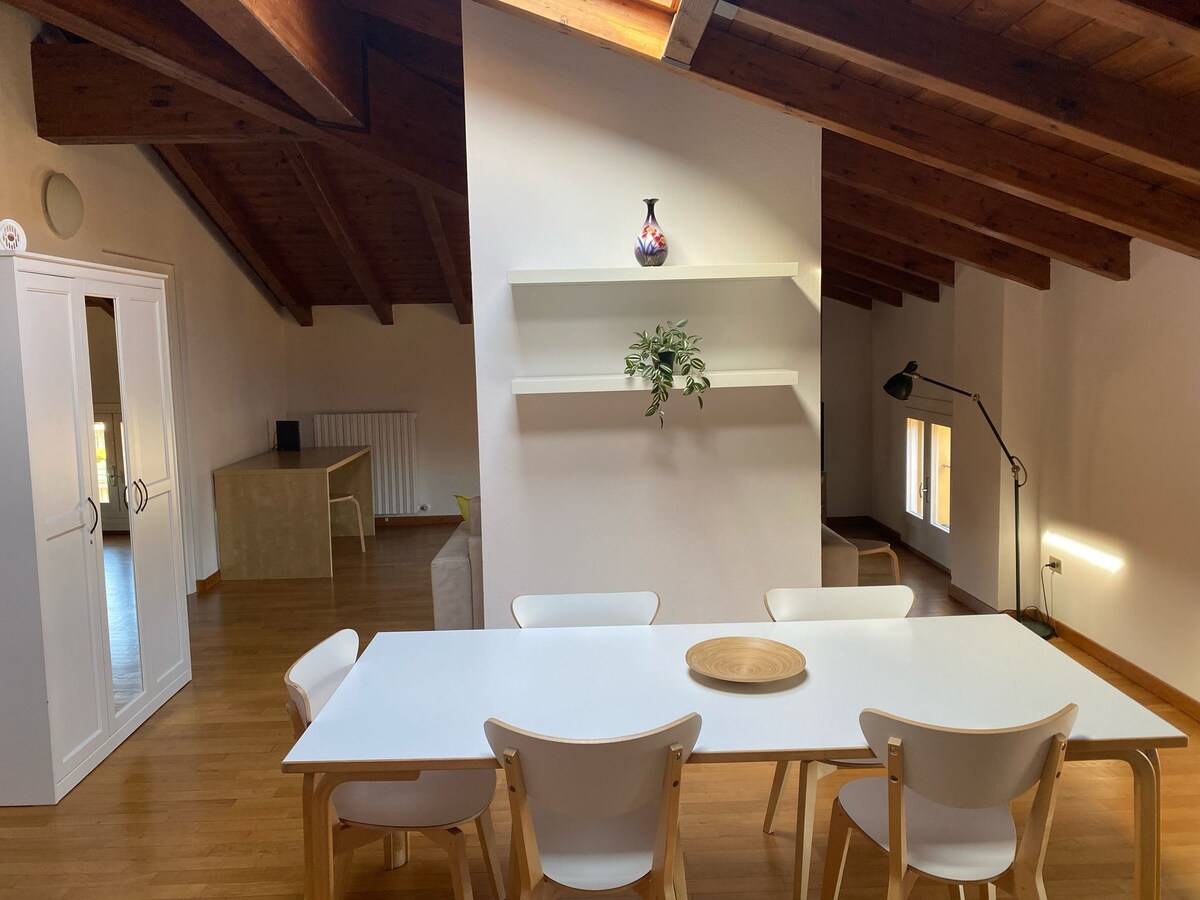 Hubane pööningukorter, mis asub tüüpilise Bolognese hoone 3. korrusel (ilma liftita). Mugav ühistranspordiliinidele ja suurtele suhtlusliinidele. Suur elutuba uue köögi ja diivanvoodiga, suur kaheinimesevoodi, vannituba just duši ja pesumasinaga. Parkettpõrand põrandal, kütte-/kliimaseade. Köök on täielikult varustatud (nõudepesumasinaga). Tasuta privaatne parkimine välistingimustes. Tasuta wifi.