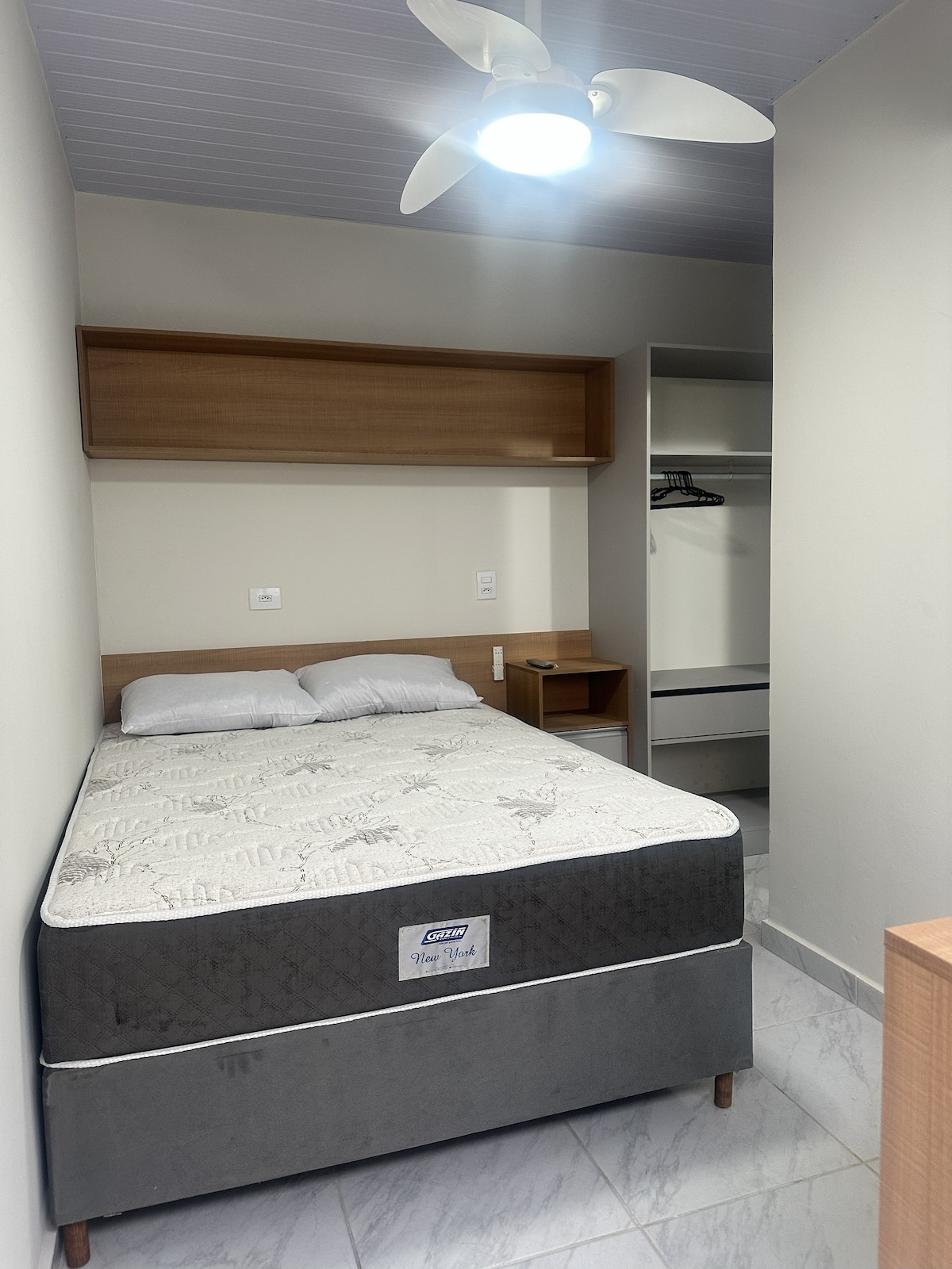 AP tipo Studio, ambiente pequeno e aconchegante com internet WiFi! Por ser no último andar, possui escadas! Até 7 pessoas. Valores adicionais a partir da 2ª até a 7ª pessoa. Condomínio possui: Piscina, Play ground, Cancha, Portaria, Churrasqueiras, salão de jogos; WiFi recreativo. É necessário exame médico para uso da piscina a partir de 01/12/2025, toda 2ª feira é fechada para limpeza! Fechadura digital com senha informada pela anfitriã. Não fornecemos roupas de cama e banho.