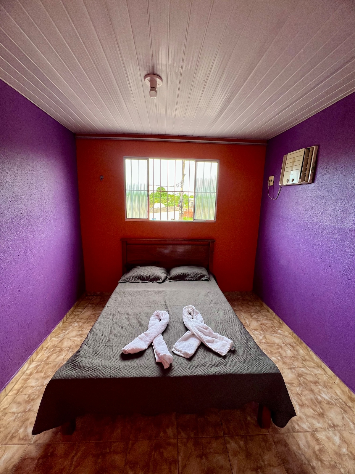Quarto bem Espaçoso, acomoda 2 a 5 pessoas.Bem localizado no Centro da cidade, a 200M do Rio Amazonas, Tranquilo, tudo próximo que você precisa, restaurantes, padarias, feira, drogarias, lanchonetes... tudo muito pertinho! a 400 M da Orla, Túnel verde, Igreja Matriz da cidade, Porto da cidade com por do sol inesquecível,Quadras poliesportivas Praça da Matriz com sua linda pedra pintada símbolo da cidade , pontos turísticos ao seu lado a 200 M de tudo! Aconchegante e confortável
