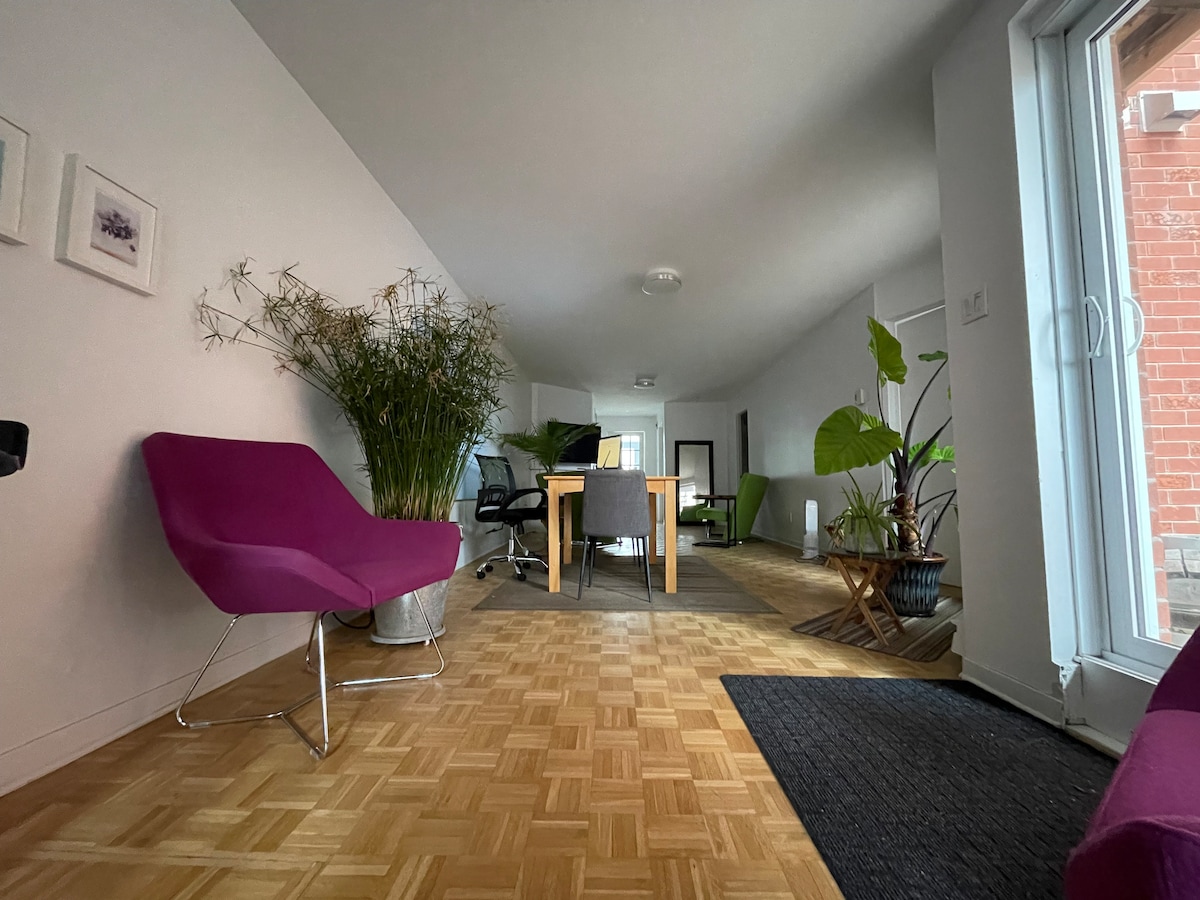 Tere tulemast minu kureeritud pied-à-terre 'i, ainulaadsesse majutuskohta Plateau Mont-Royal-Montreali südames. See avatud kahe magamistoaga loft on päikesepaisteline ja varustatud disainmööbli, tippklassi seadmete ja pehmete vaipadega, et hoida sind peatumise ajal hubasena ja mugavana. Loodan, et naudid kõike, mida minu kodu ja Plateau pakuvad, alates matkadest Mont-Royalis kuni joogaga Sanghas ja jookidest Darlingis. Boonus: Saint-Viateuri saiakesed on jalutuskäigu kaugusel!