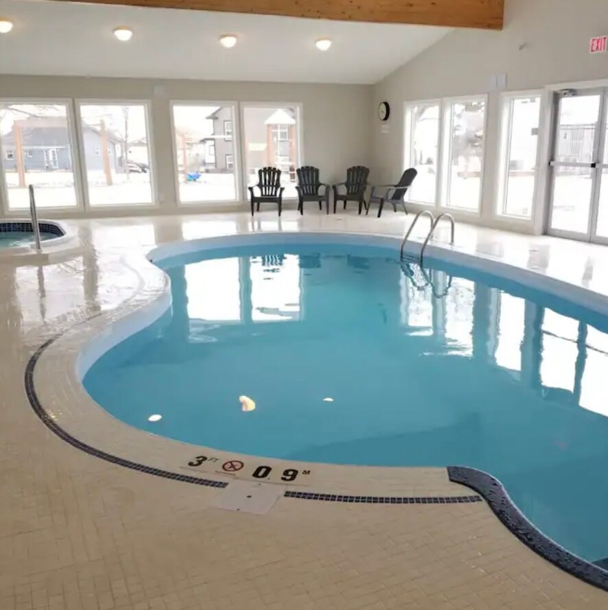 This memorable place is anything but ordinary. It has an indoor and outdoor pool. 10 minute walk to the lake. The house has a queen bed in one room and a bunk bed in the other room. Full kitchen. Full bath room. Basketball court, pickle ball court.